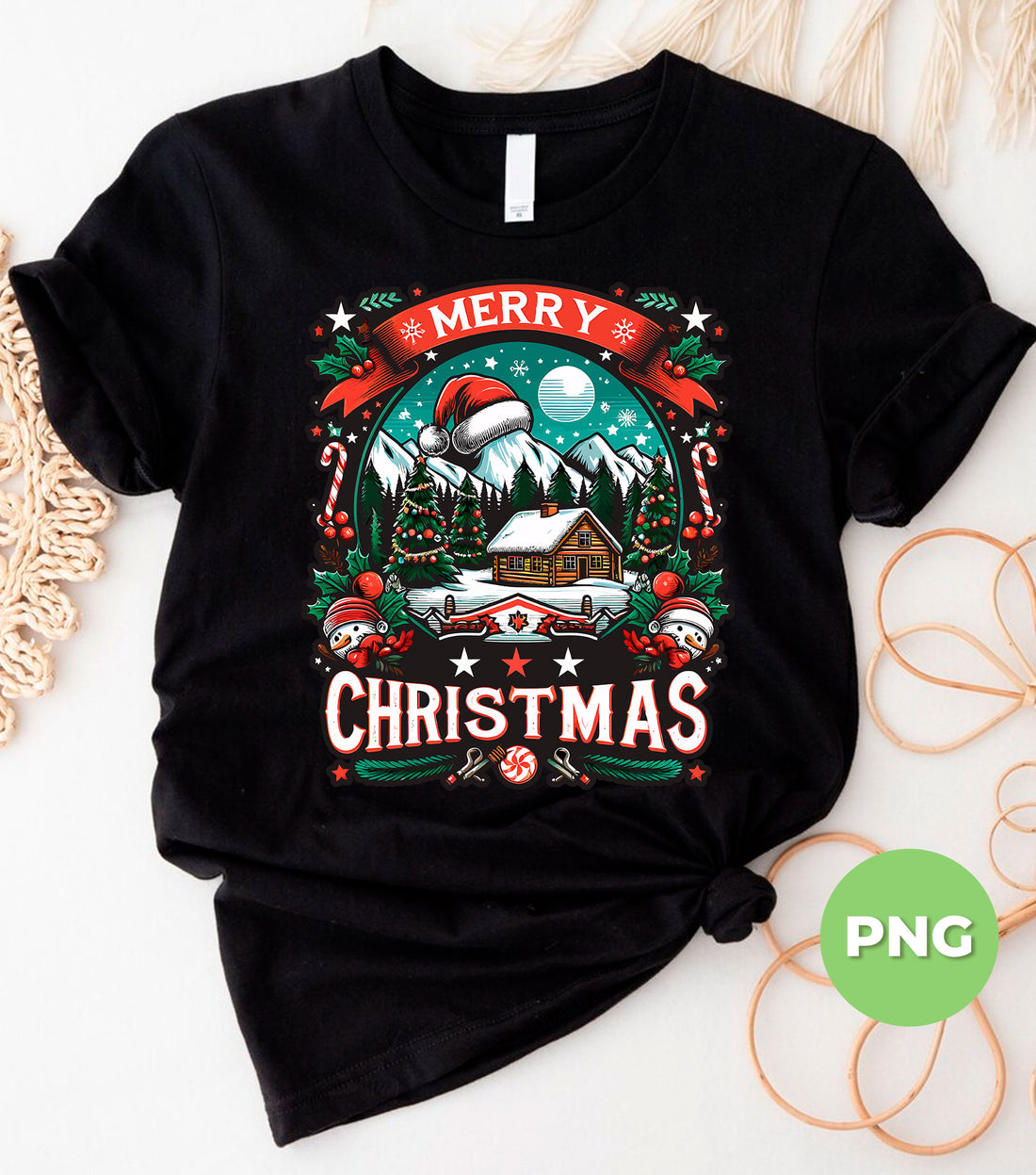 Merry Christmas, Trendy Christmas, Gingerbread House, Mountain Wear Xmas Hat, Digital Files, Png Sublimation
