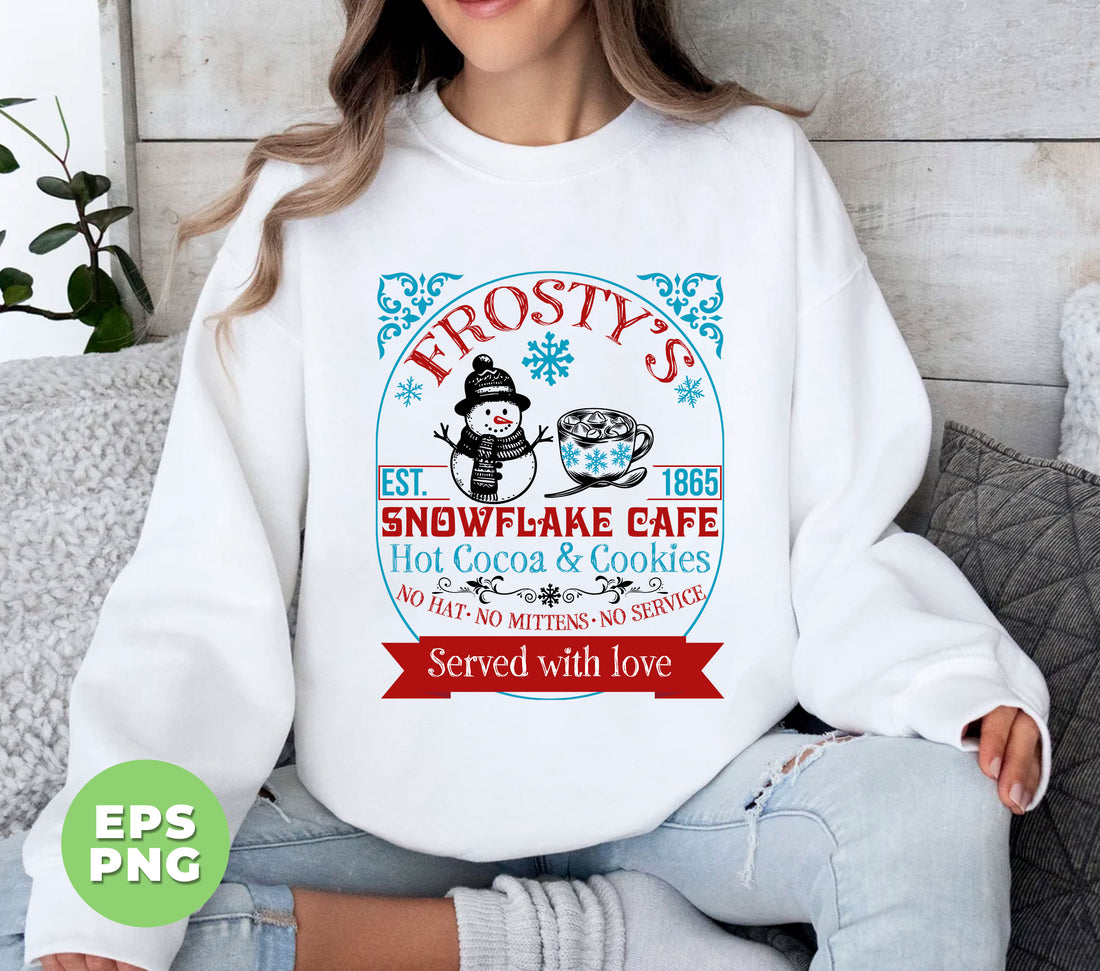 Cute Christmas, Frosty's Snowflake Cafe, Hot Cocoa And Cookie, No Hat, No Mittens, No Service, Digital Files, Png Sublimation