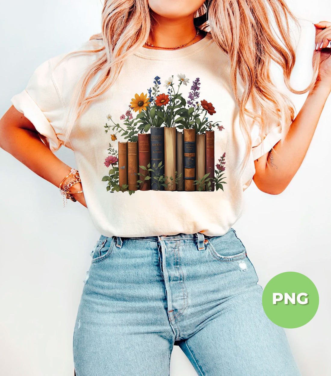 Flowers And Books, Aesthetic Gift, Bookish Gift, Bookworm Gift, Librarian Gift, Digital Files, Png Sublimation