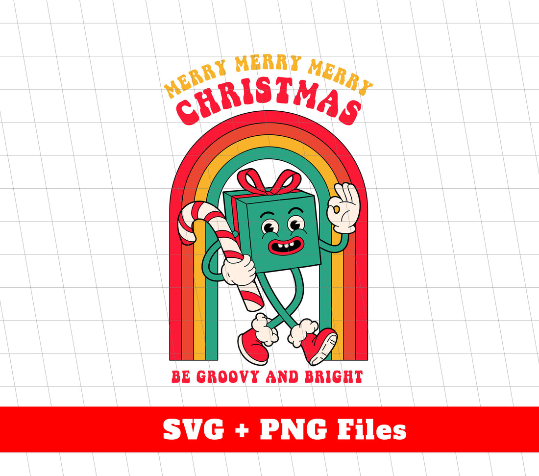 Merry Christmas, Be Groovy And Bright, Groovy Rainbow, Digital Files, Png Sublimation