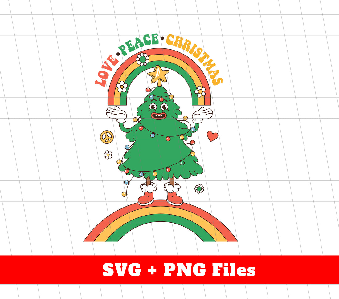 Love Peace Christmas, Groovy Christmas Tree, Digital Files, Png Sublimation