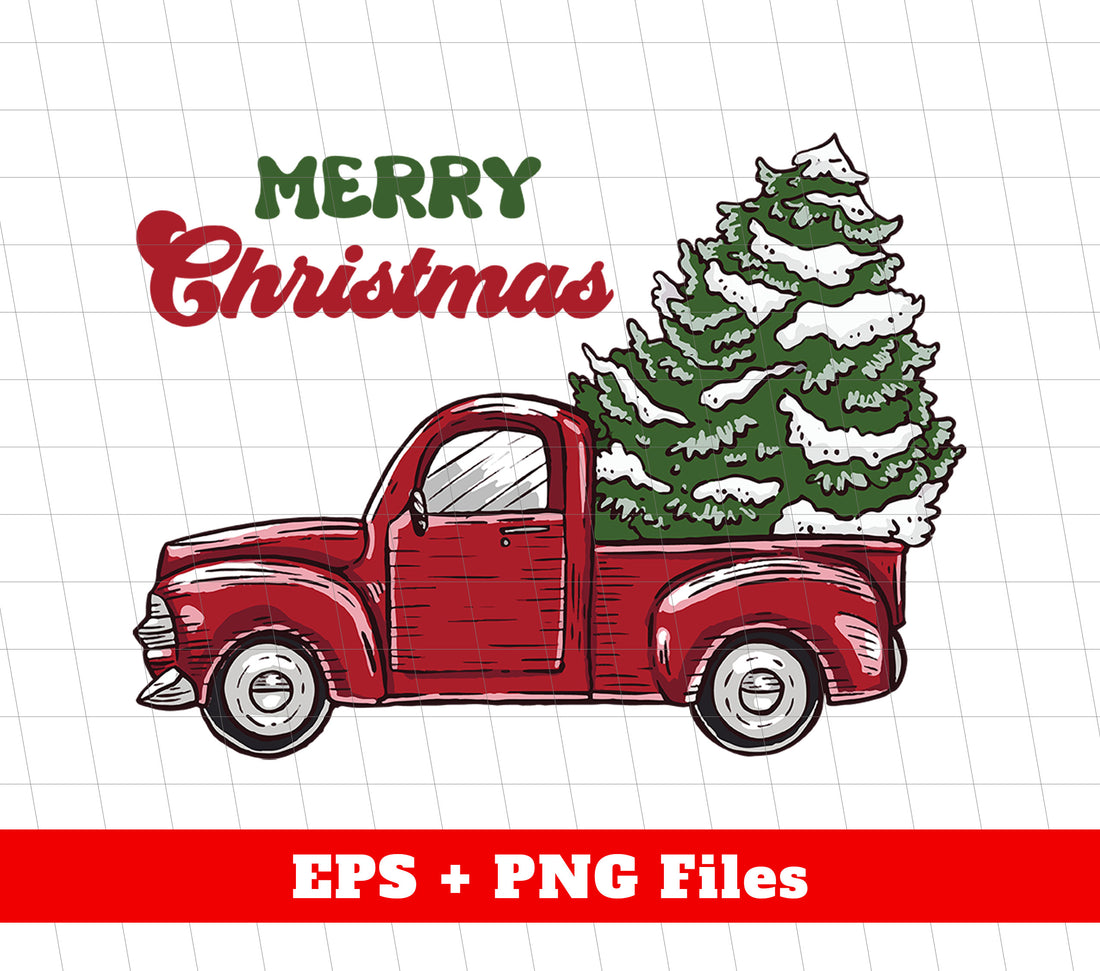 Red Car Bring Christmas Tree, Merry Christmas, Digital Files, Png Sublimation