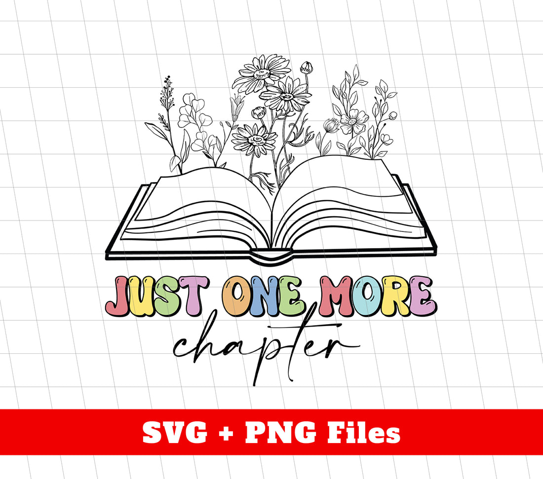 Just One More Chapter, Love To Read Book, Book And Flowers, Digital Files, Png Sublimation
