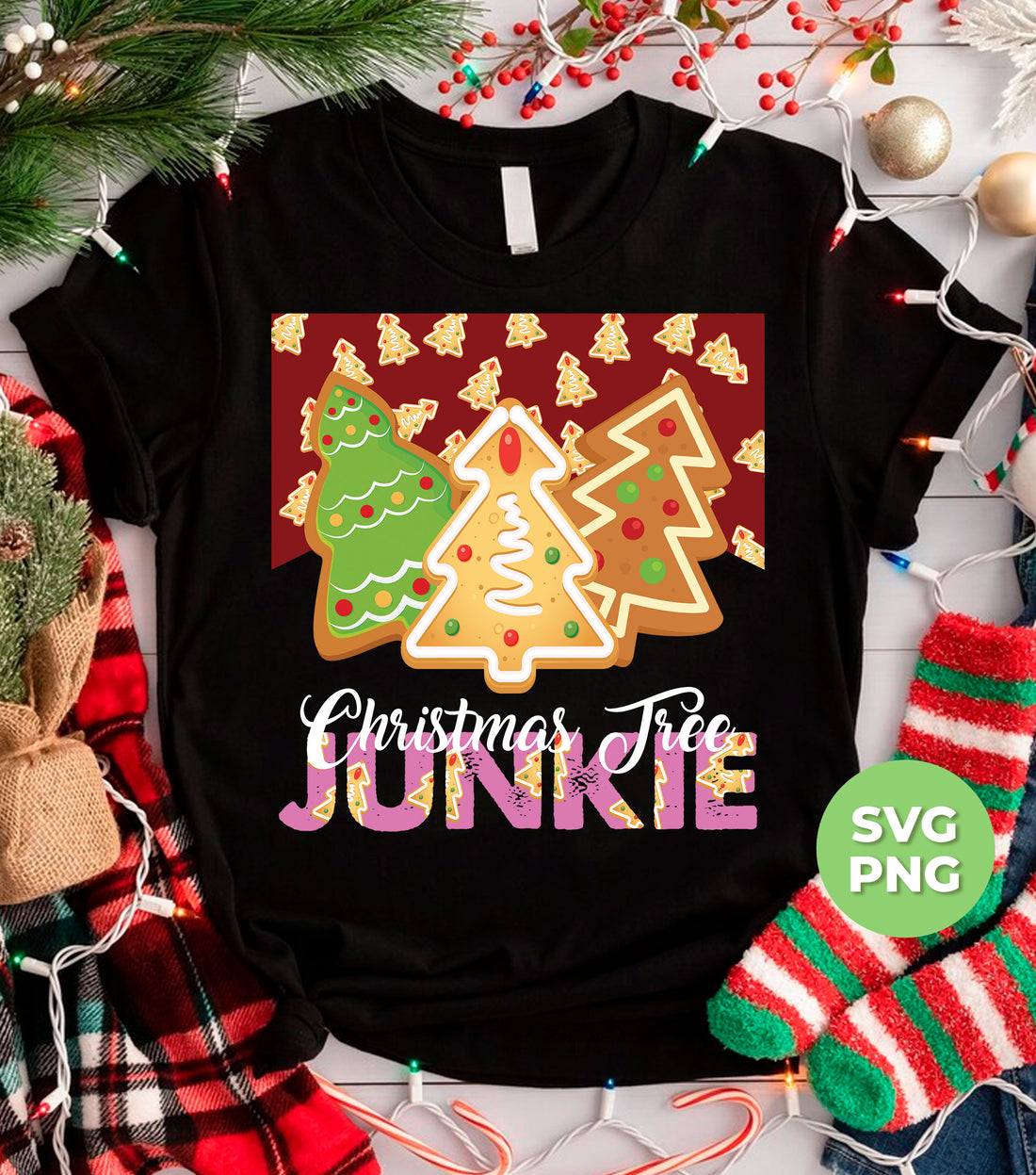 Christmas Tree Junkie, Xmas Tree Gingerbread, Gingerbread Lover, Digital Files, Png Sublimation