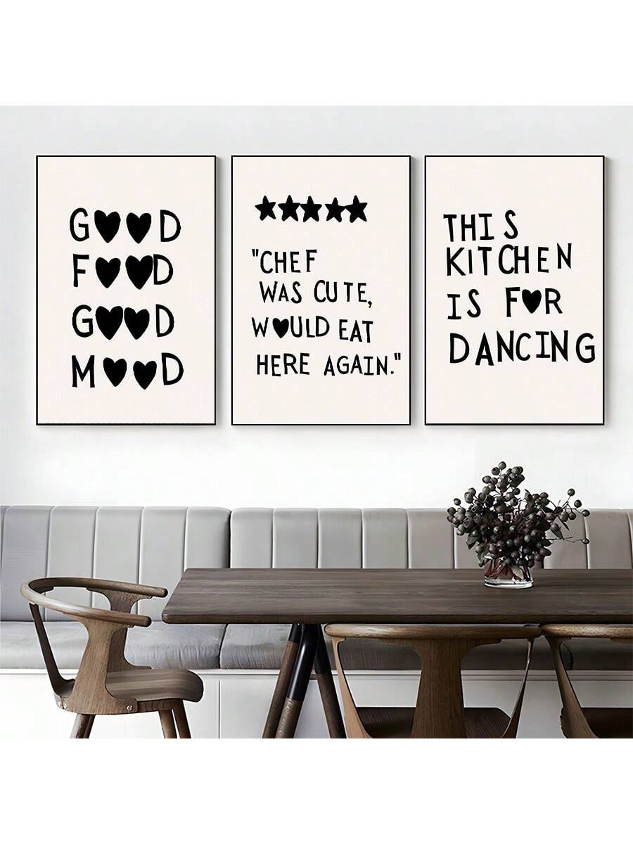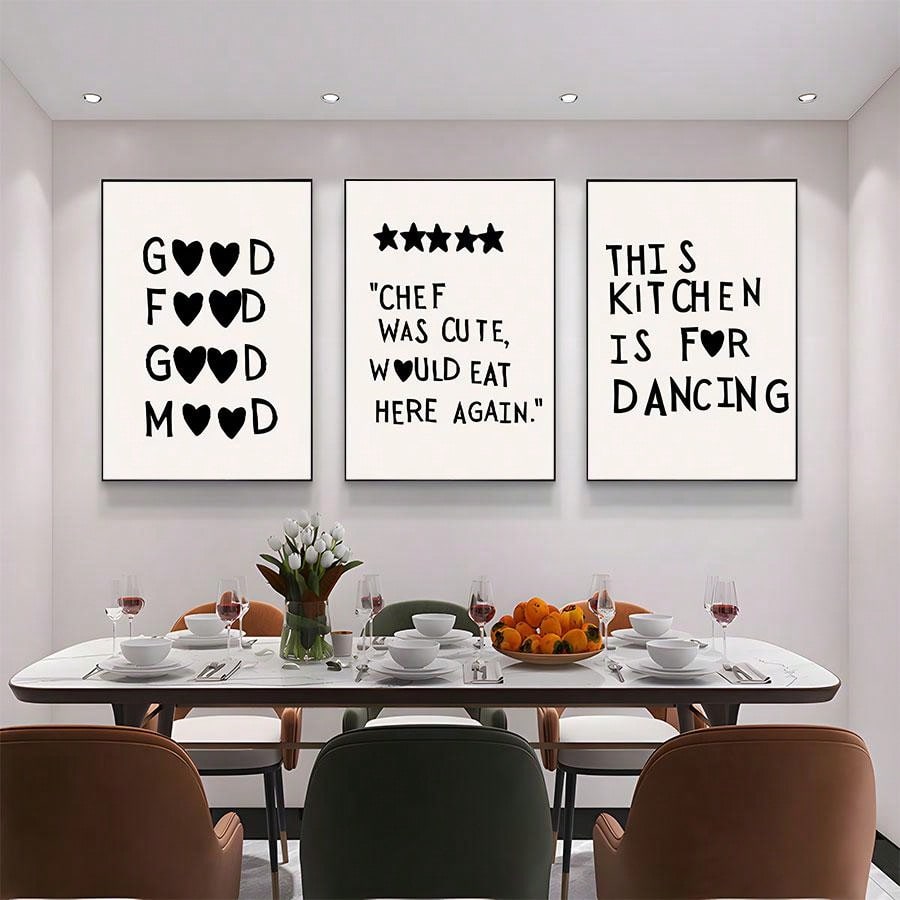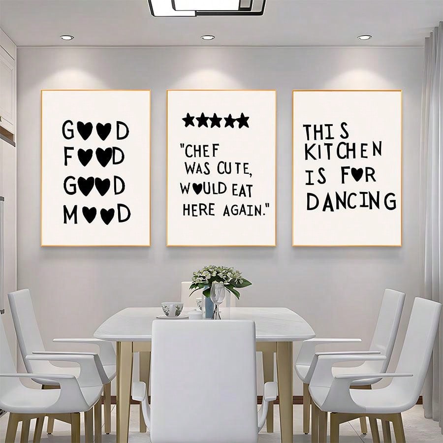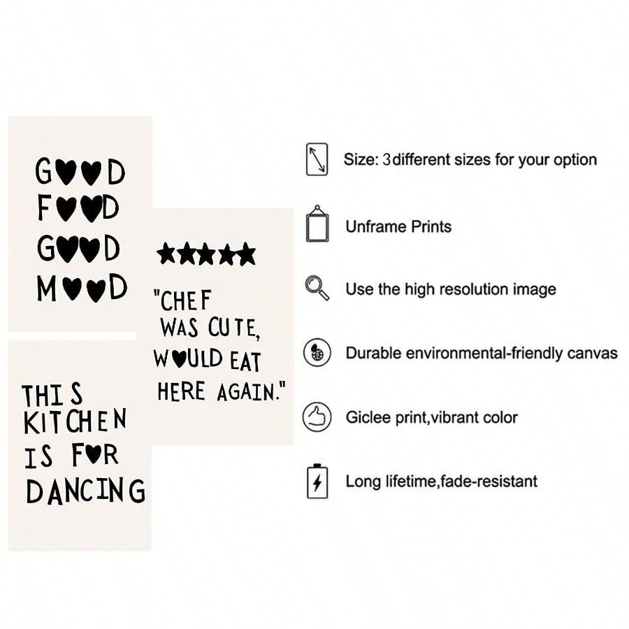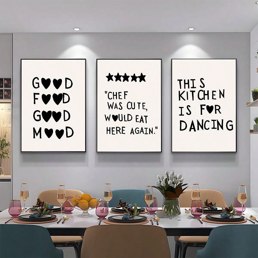 3-Piece Minimalist Cooking Art Canvas Prints for Modern Kitchen Decor
