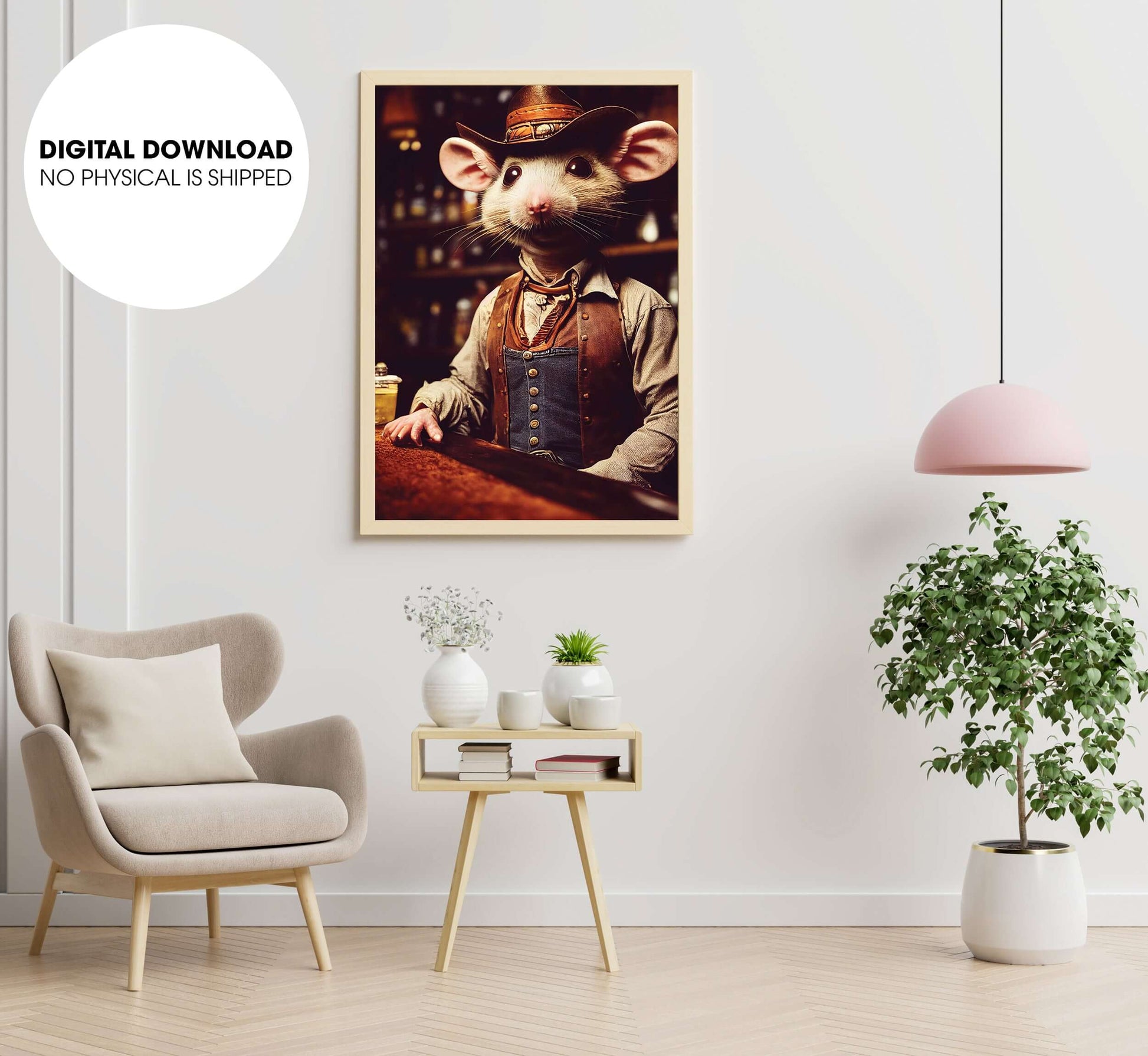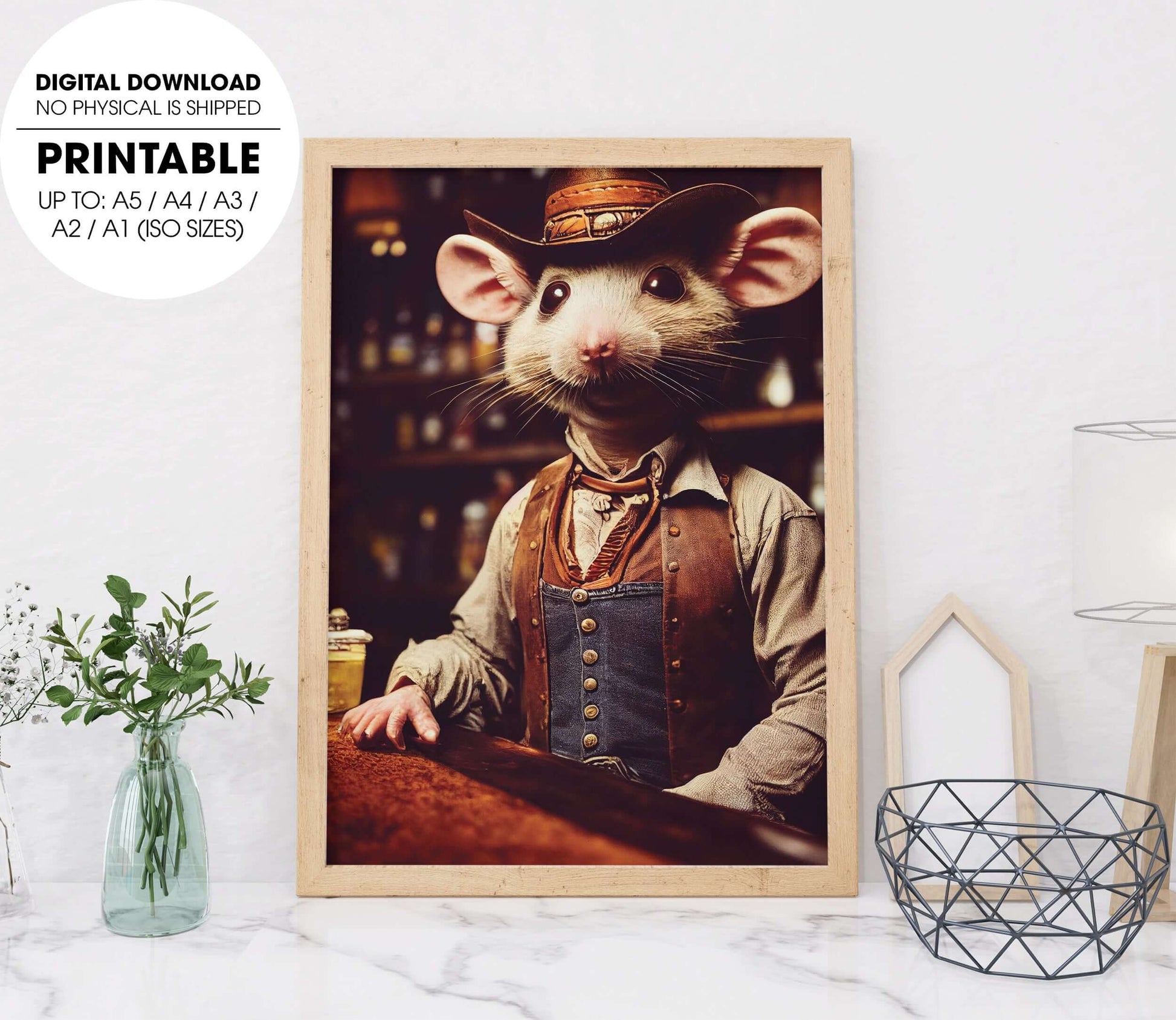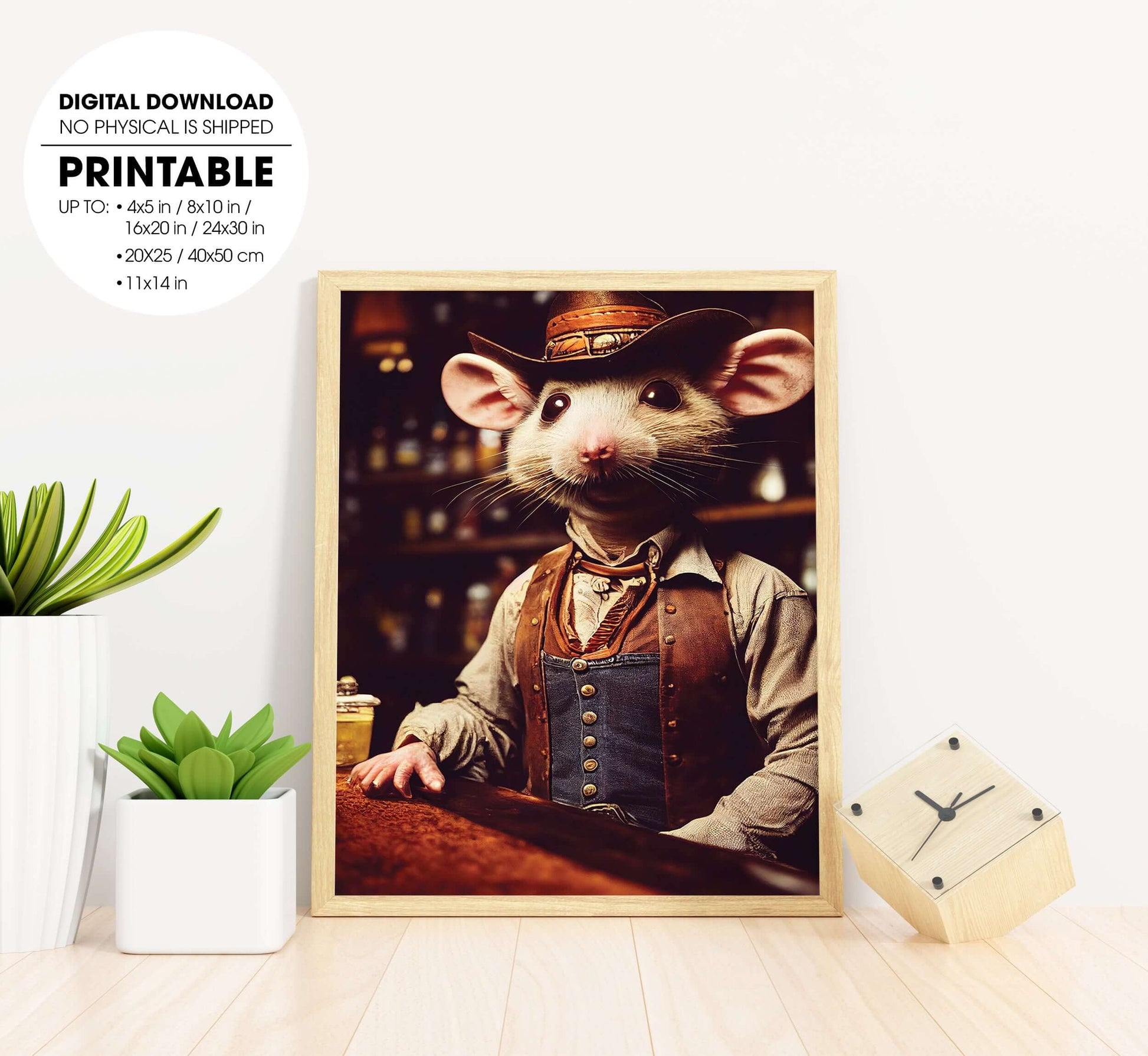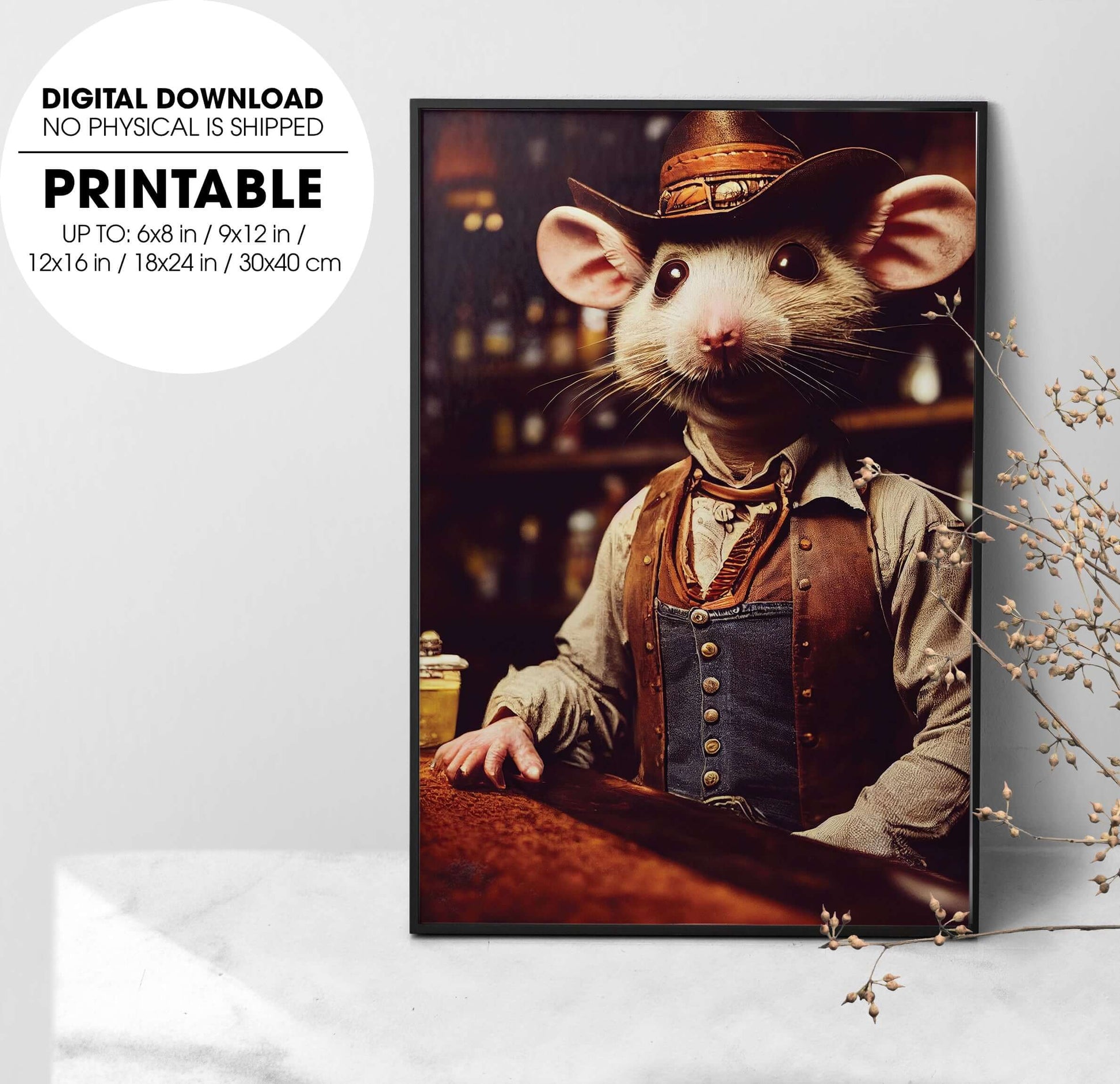 Bartender Cute, Adorable Rat Dressed In Wild West, Bartender Gift, Poster Design, Printable Art