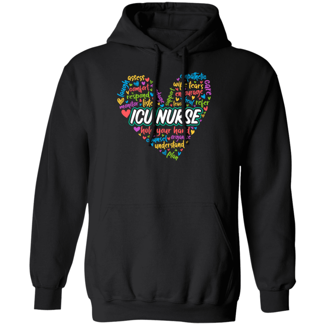 ICU Nurse, Nurse In My Heart, Hold Your Hand, Caregiver Gift, Colorful Nurse Pullover Hoodie
