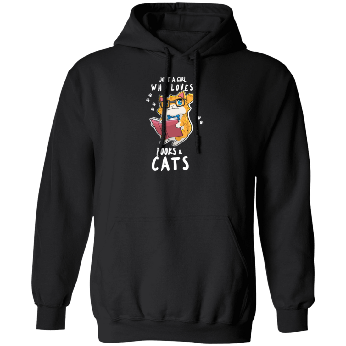 Just A Girl Who Loves Books And Cats, Love Books And Cats, Bookworm Gift Pullover Hoodie