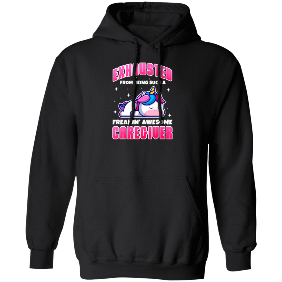 Unicorn Lover, Exhausted From Being Such A Freaking Awesome Caregiver Pullover Hoodie