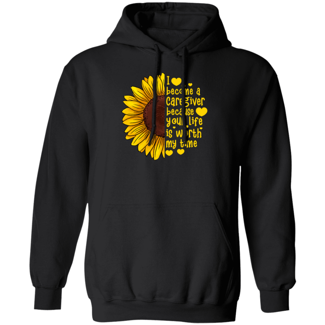 Sunflower Gift, I Become A Caregiver Because Your Life Is Worth My Time Pullover Hoodie