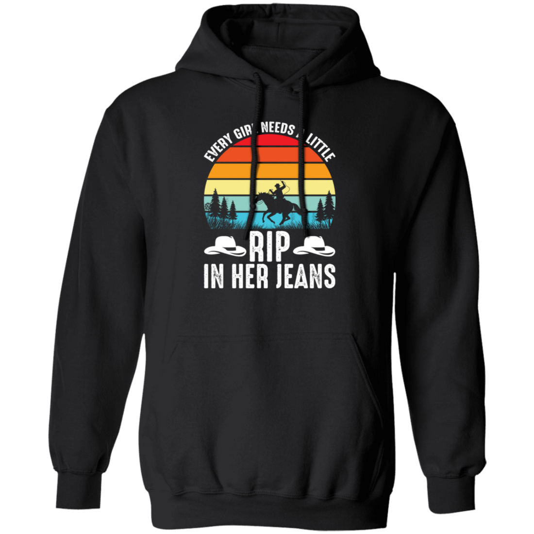My Girl Retro Gift, Every Girl Need A Little Rip In Her Jeans, Retro Girl Gift, Cow Girl Pullover Hoodie