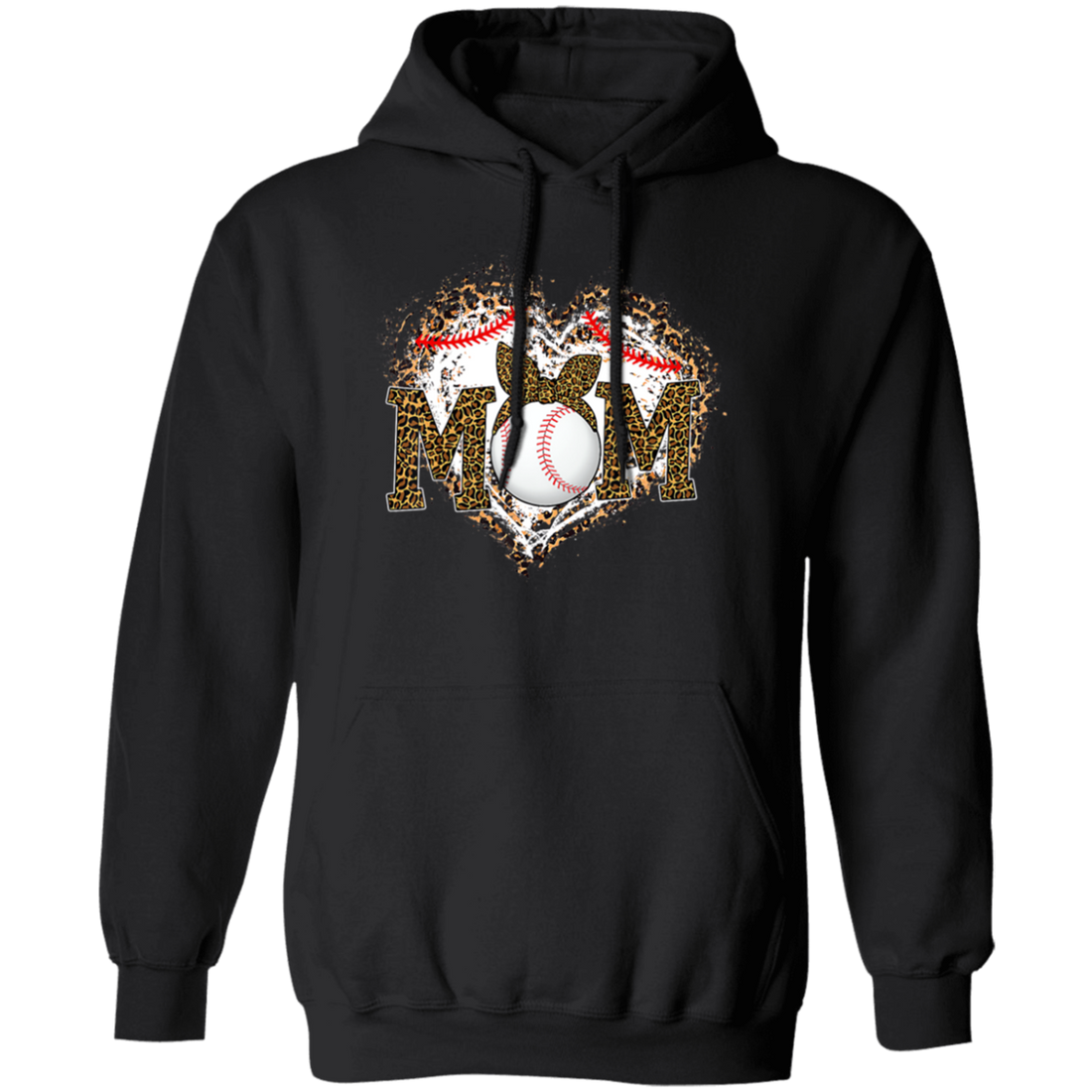 Funny Baseball Mom, Leopard Heart Mom, Ball Sport Lover Gift, Leopard Baseball Pullover Hoodie