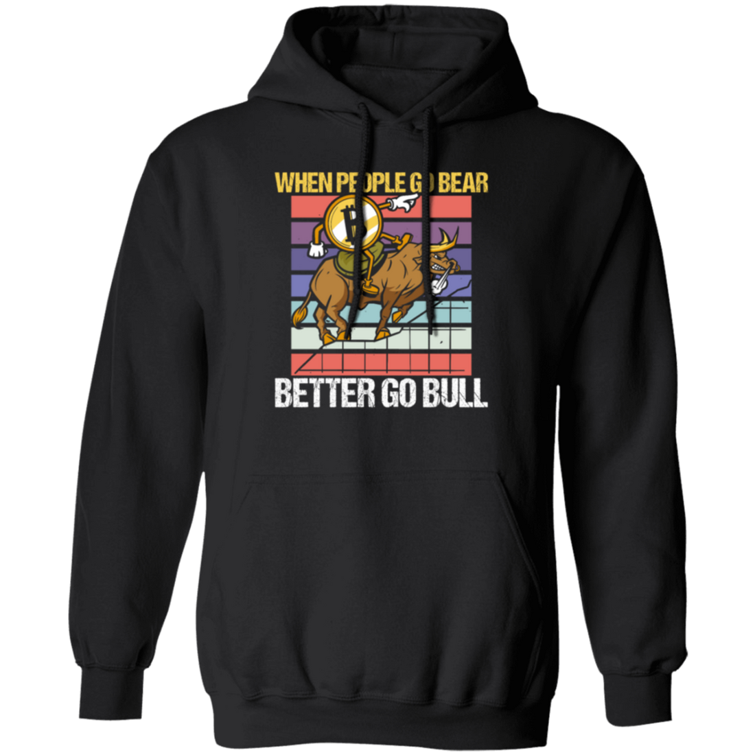 When People Go Bear Better Go Bull, Retro Bitcoin Gift, Love Bull Pullover Hoodie