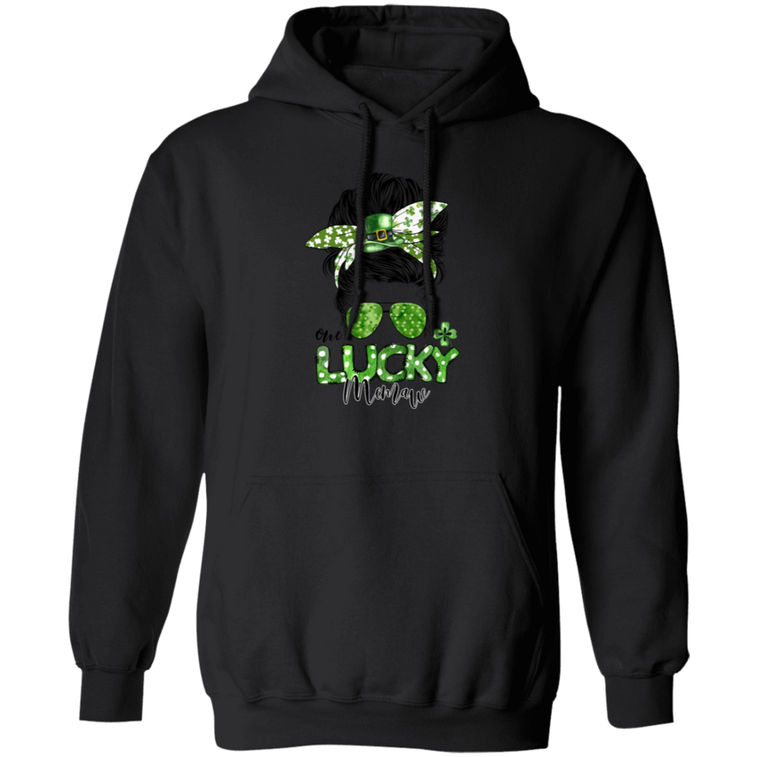 Messy Bun Hair Lover, One Lucky Memaw Matching Family St Patrick Pullover Hoodie