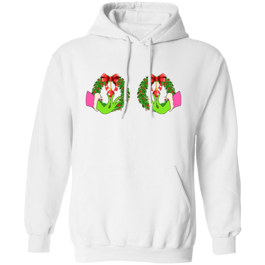 Funny Christmas, Grinch's Hands On The Boobs, Merry Titsmas, Merry Christmas, Trendy Chrismas Pullover Hoodie