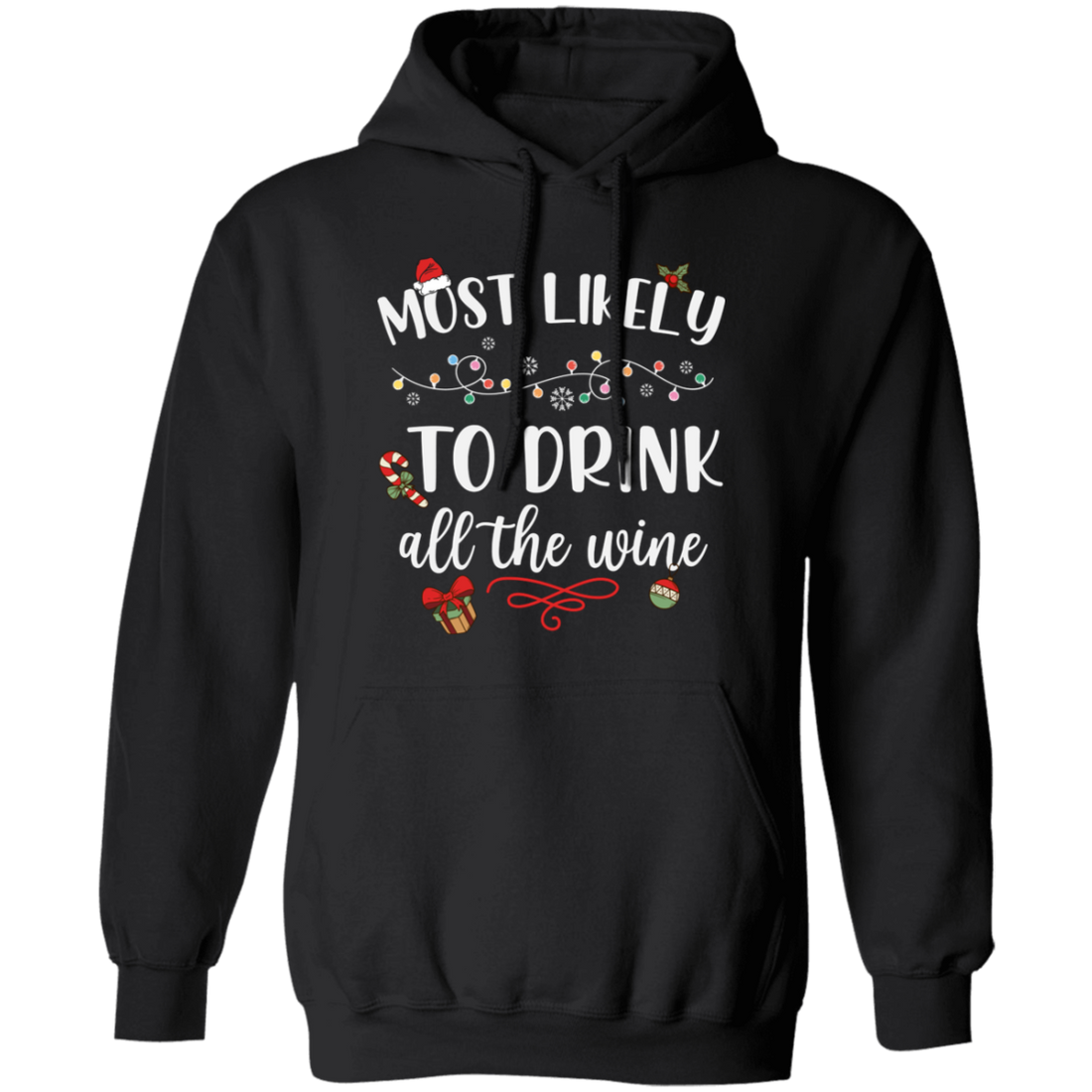 Most Likely To Drink All The Wine, Drinking Christmas, Merry Christmas, Trendy Chrismas Pullover Hoodie