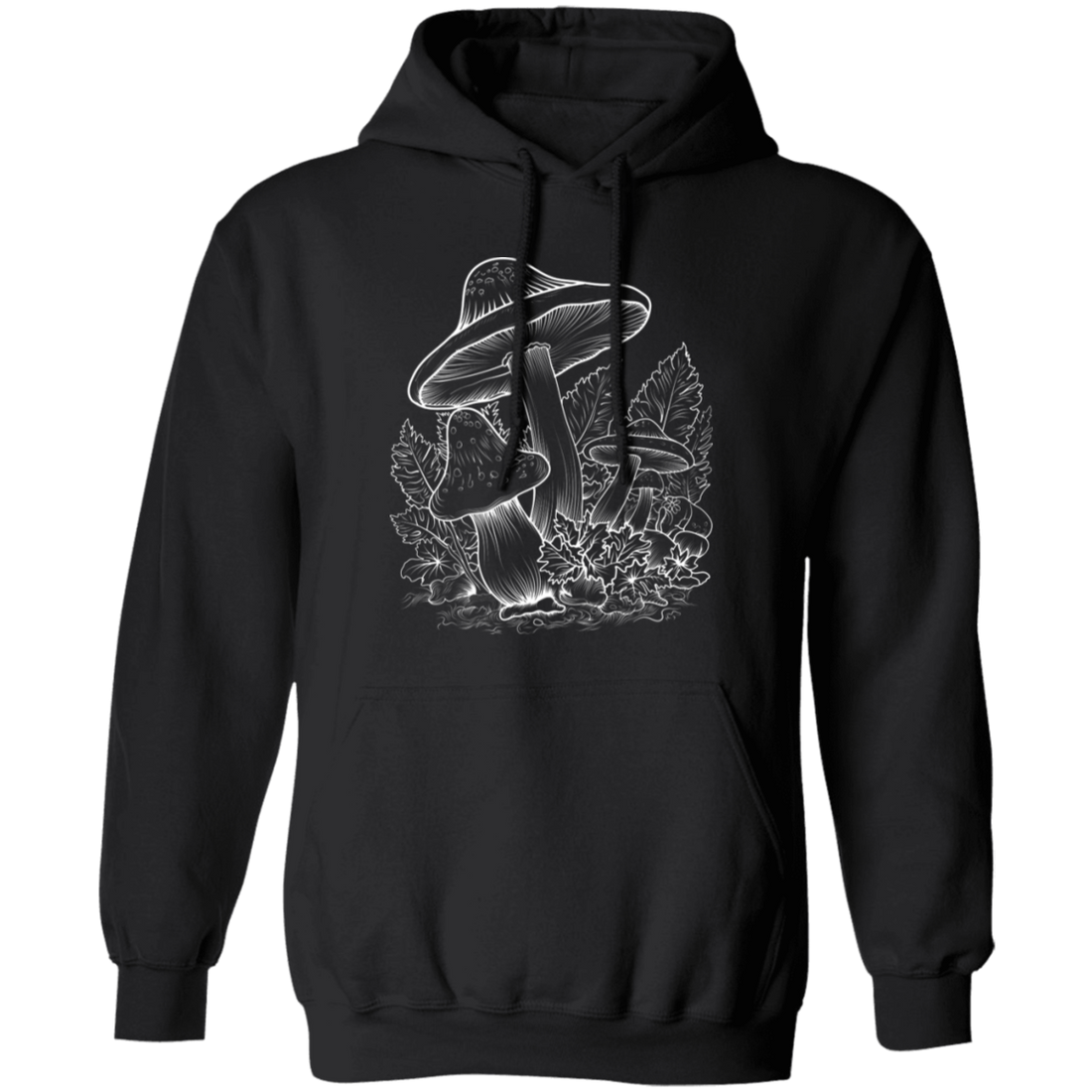 Aesthetic Mushroom, Cottagecore Design, Mushroom Lineart black Pullover Hoodie