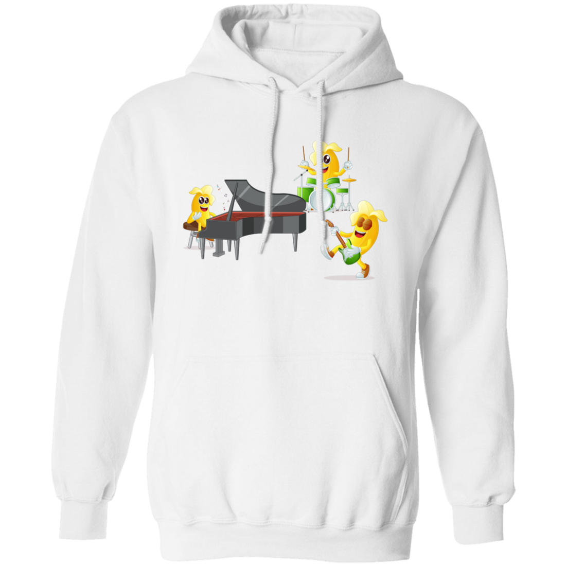 Banana Band, Banana Music Band, Banana Drum, Banana Guitarist, Banana Piano Pullover Hoodie