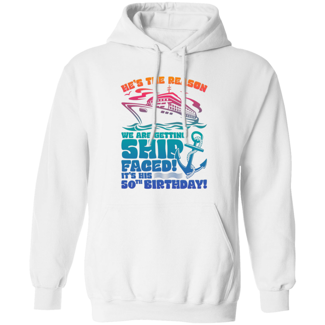 He's The Reason We Are Getting Ship Faced, It's His 50th Birthday Pullover Hoodie
