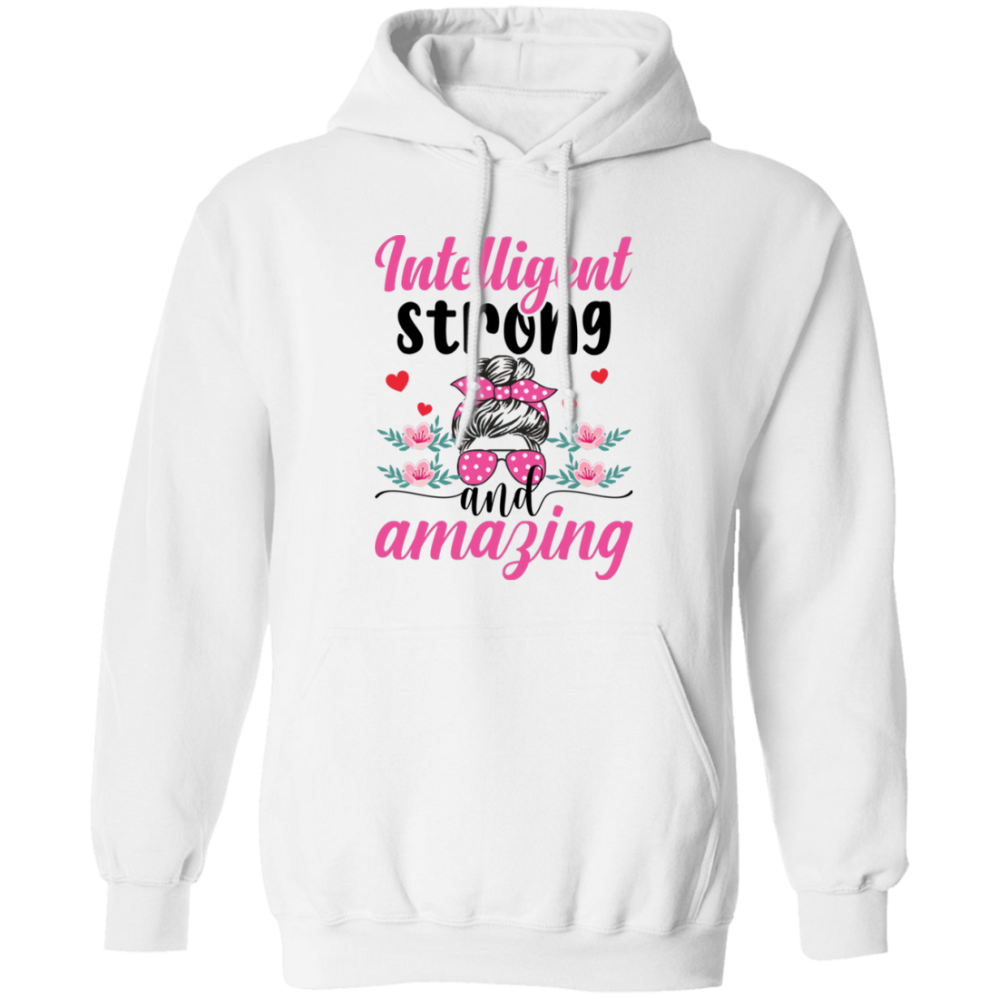 Intelligent Strong And Amazing, Messy Bun Girl, Pink Sunglasses, Valentine's Day, Trendy Valentine Pullover Hoodie
