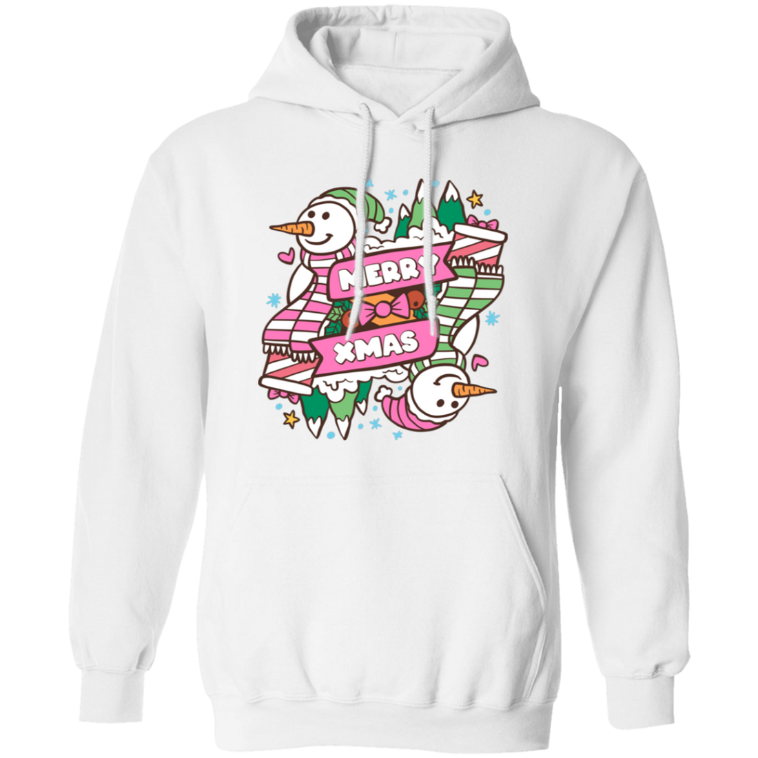 Merry Xmas, Trendy Snowman, Pinky Snowman, Pink Christmas, Merry Christmas, Trendy Christmas Pullover Hoodie