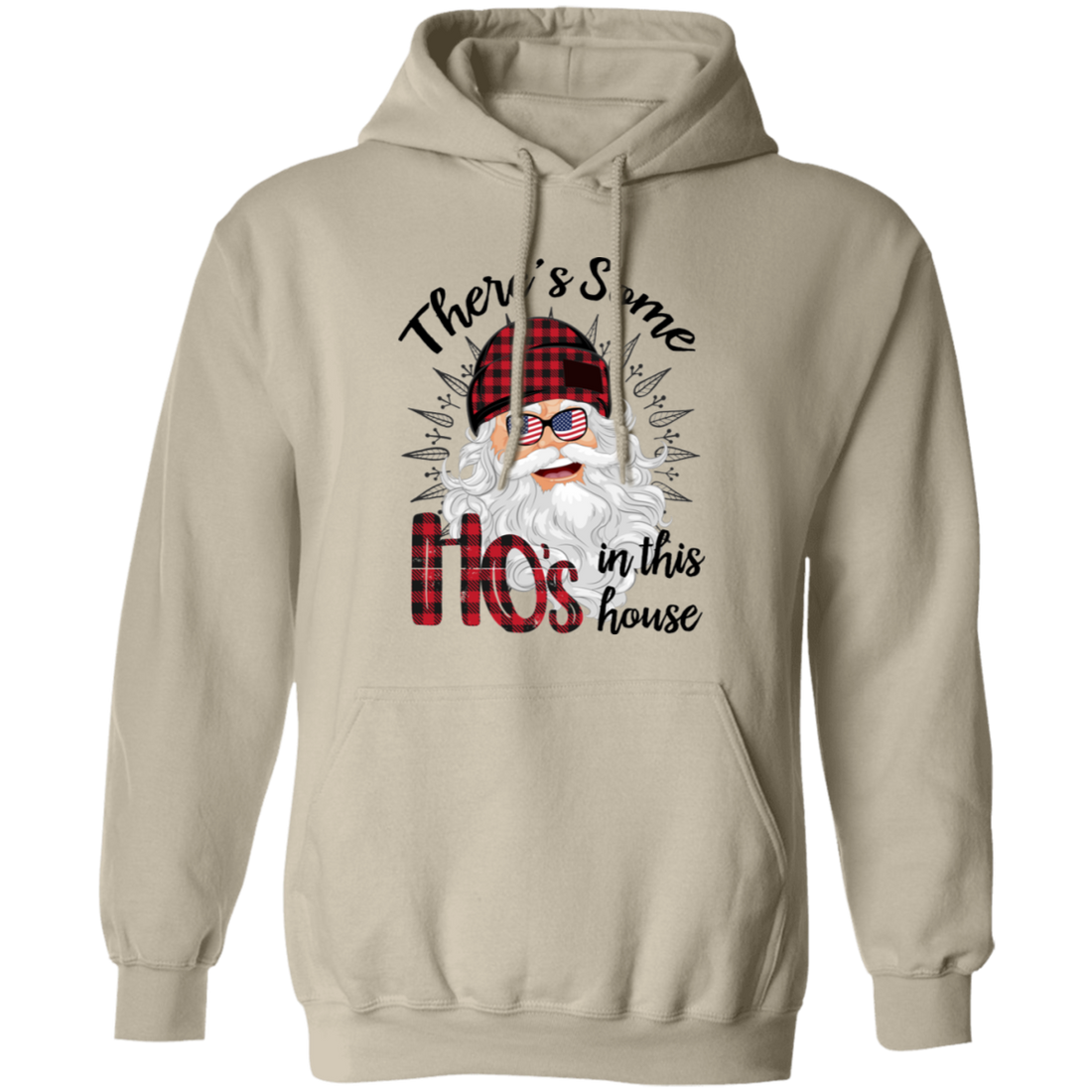 There's Some Ho's In This House, Cool Santa, Red Plaid Hat, Merry Christmas, Trendy Christmas Pullover Hoodie