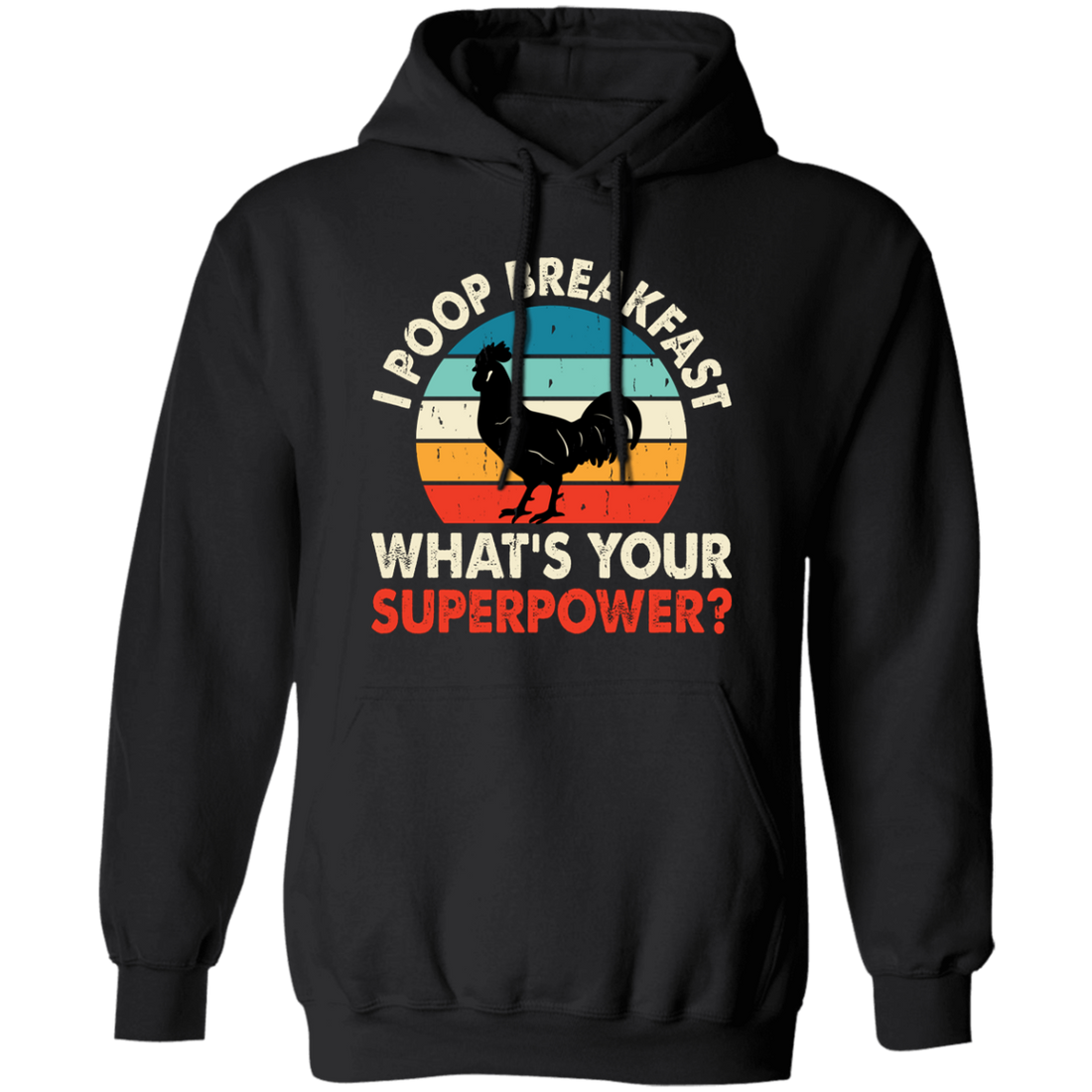 I Poop Breakfast, What's Your Superpower, Retro Chicken Pullover Hoodie