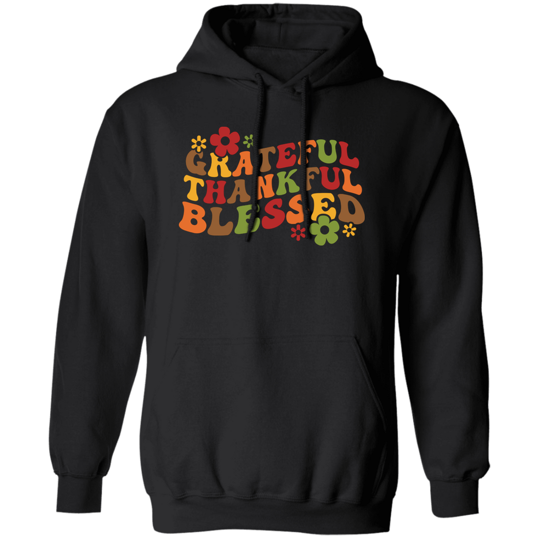 Grateful, Thankful, Blessed, Thanksgiving, Fall Season Pullover Hoodie