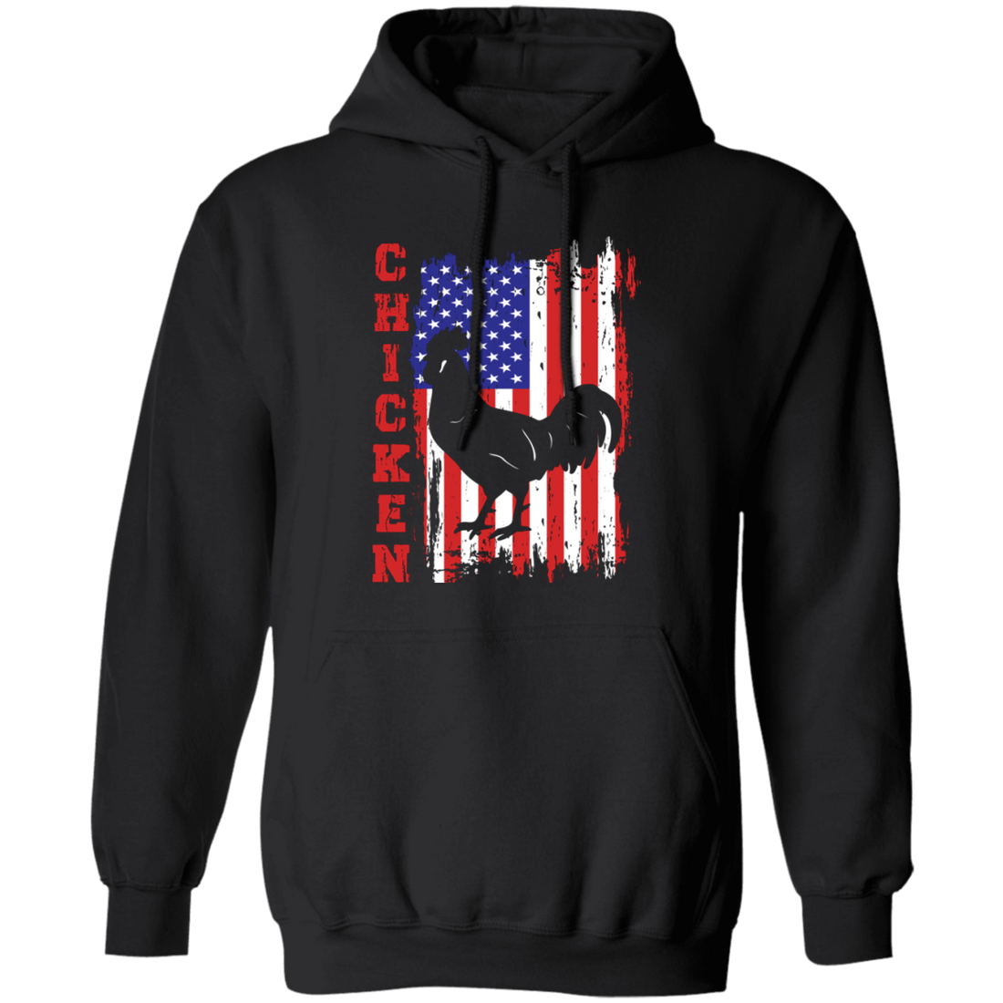 Chicken Silhouette, American Chicken, American Flag Pullover Hoodie