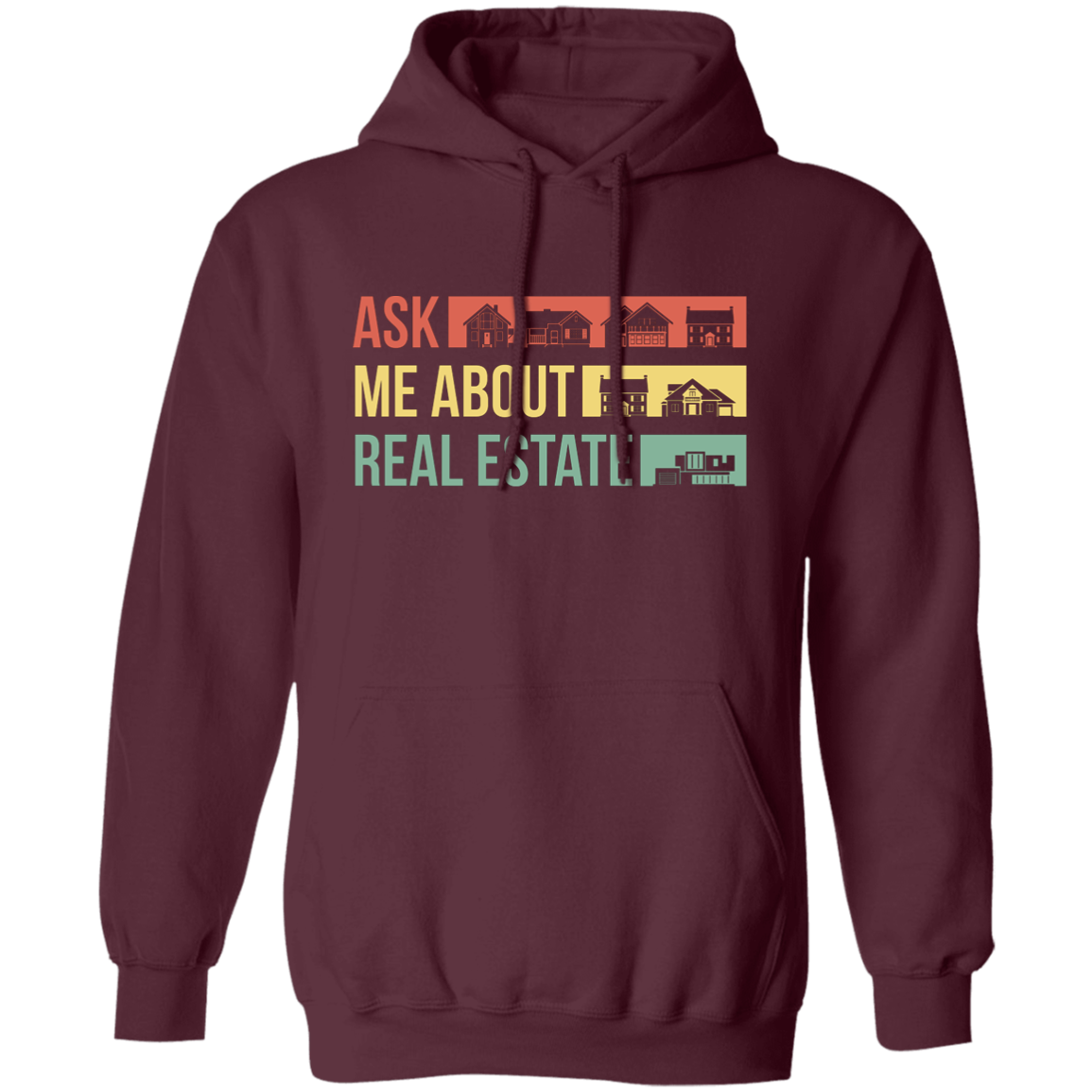 Ask Me About Real Estate, Retro Real Estate, House Silhouette Pullover Hoodie