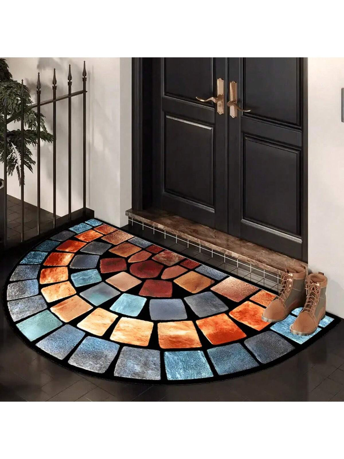 Vibrant Mosaic Round Doormat - Soft Velvet, Non-Slip & Machine Washable for Stylish Home Decor