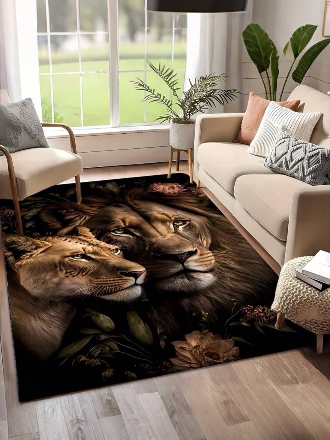 Creative Lion Pattern Machine-Washable Area Rug for Stylish Home Decor in Living Room, Bedroom, or Office