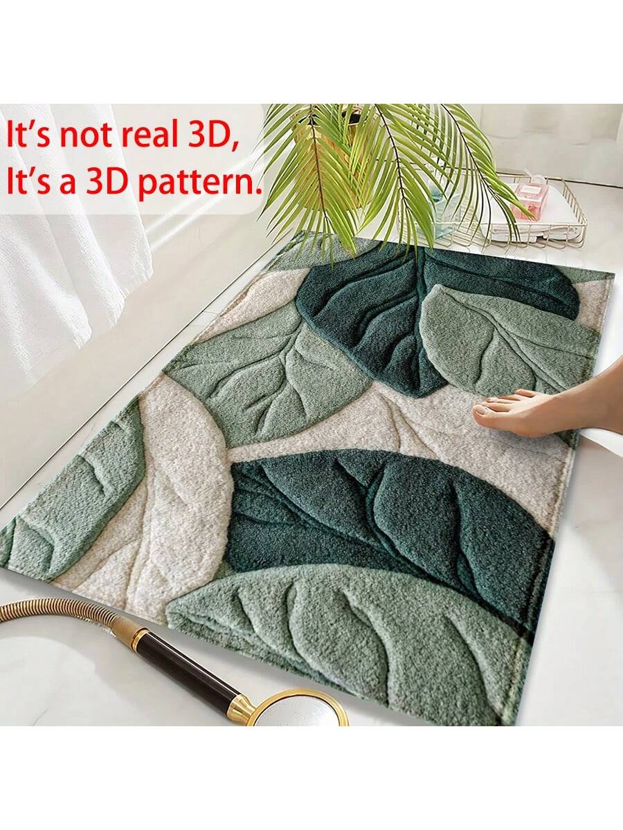 Trendy Green Leaf Microfiber Bath Rug - Non-Slip, Soft & Absorbent for Bathroom and Home Décor