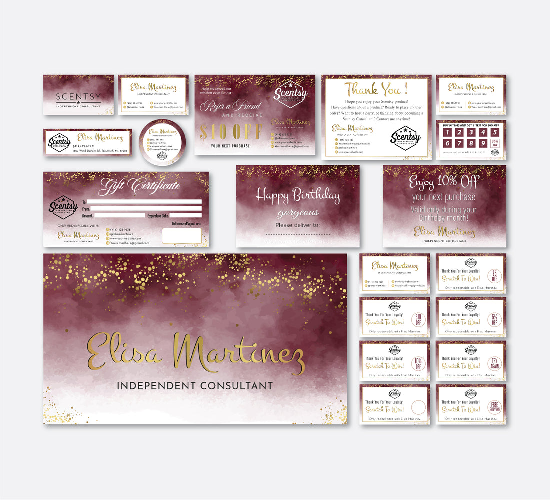 Glitter Gold Scentsy Marketing Bundle, Personalized Scentsy Full Kit Business Cards SS26. This listing is...