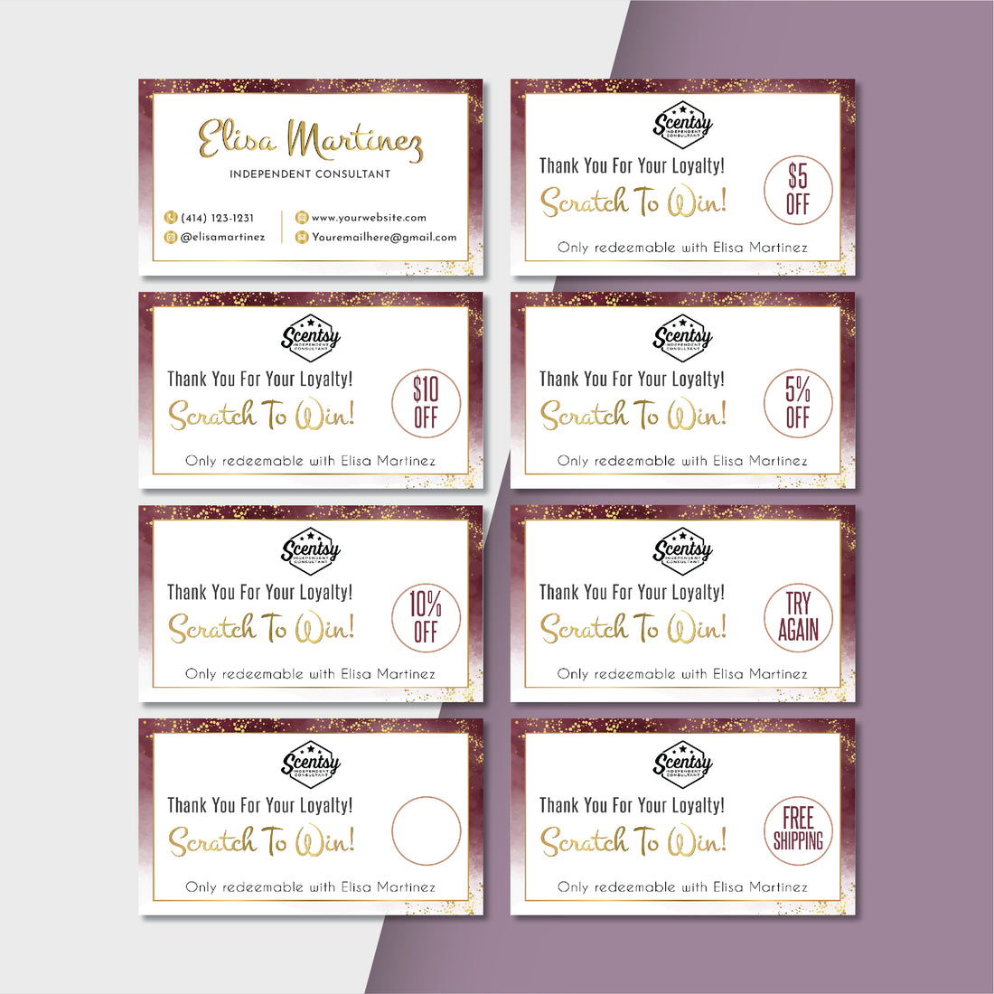 Glitter Gold Scentsy Scratch To Win Card, Personalized Scentsy Business Cards SS26