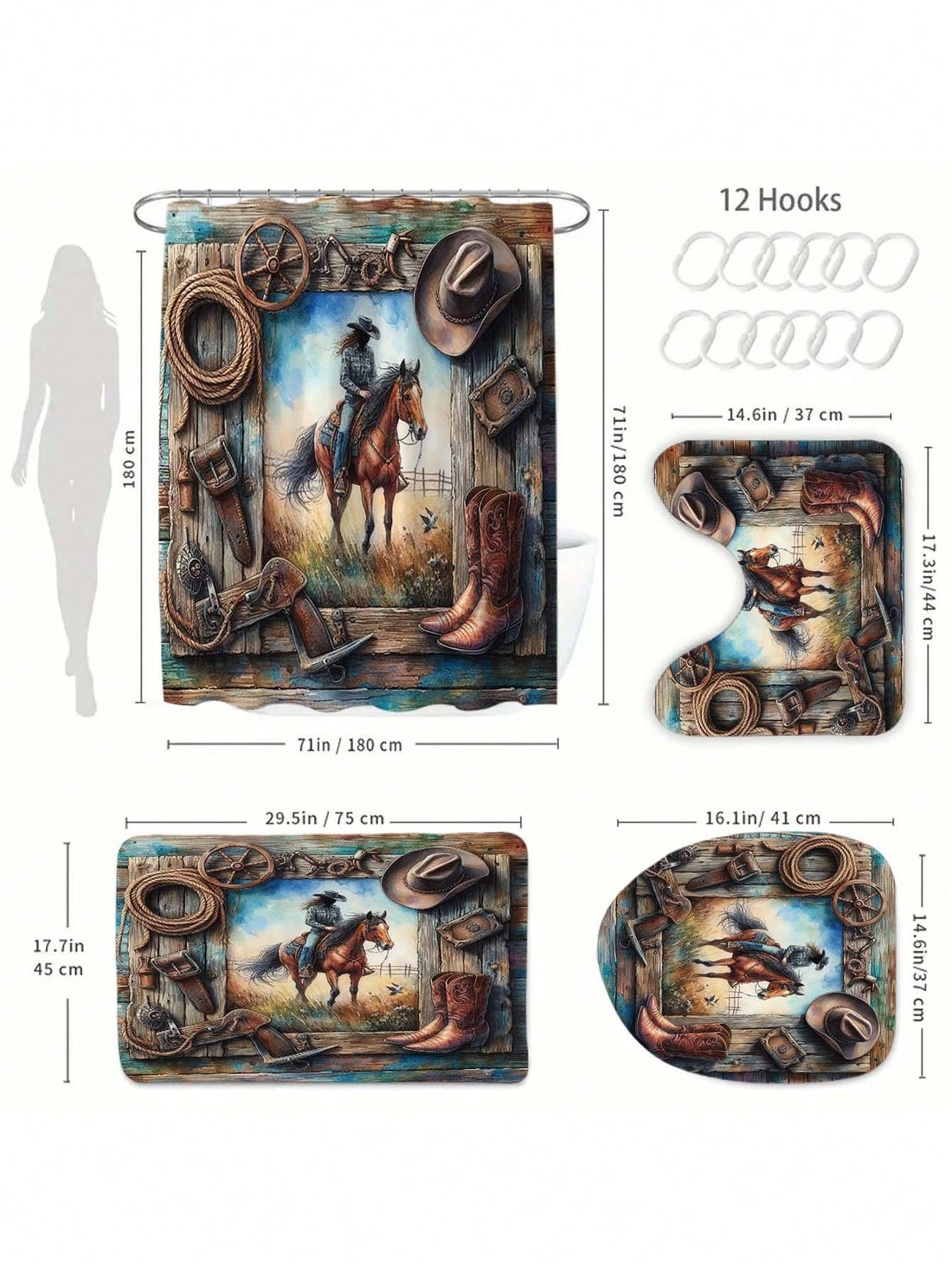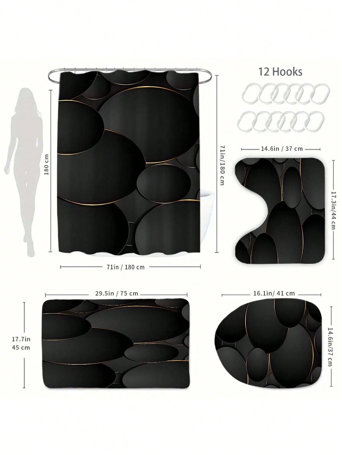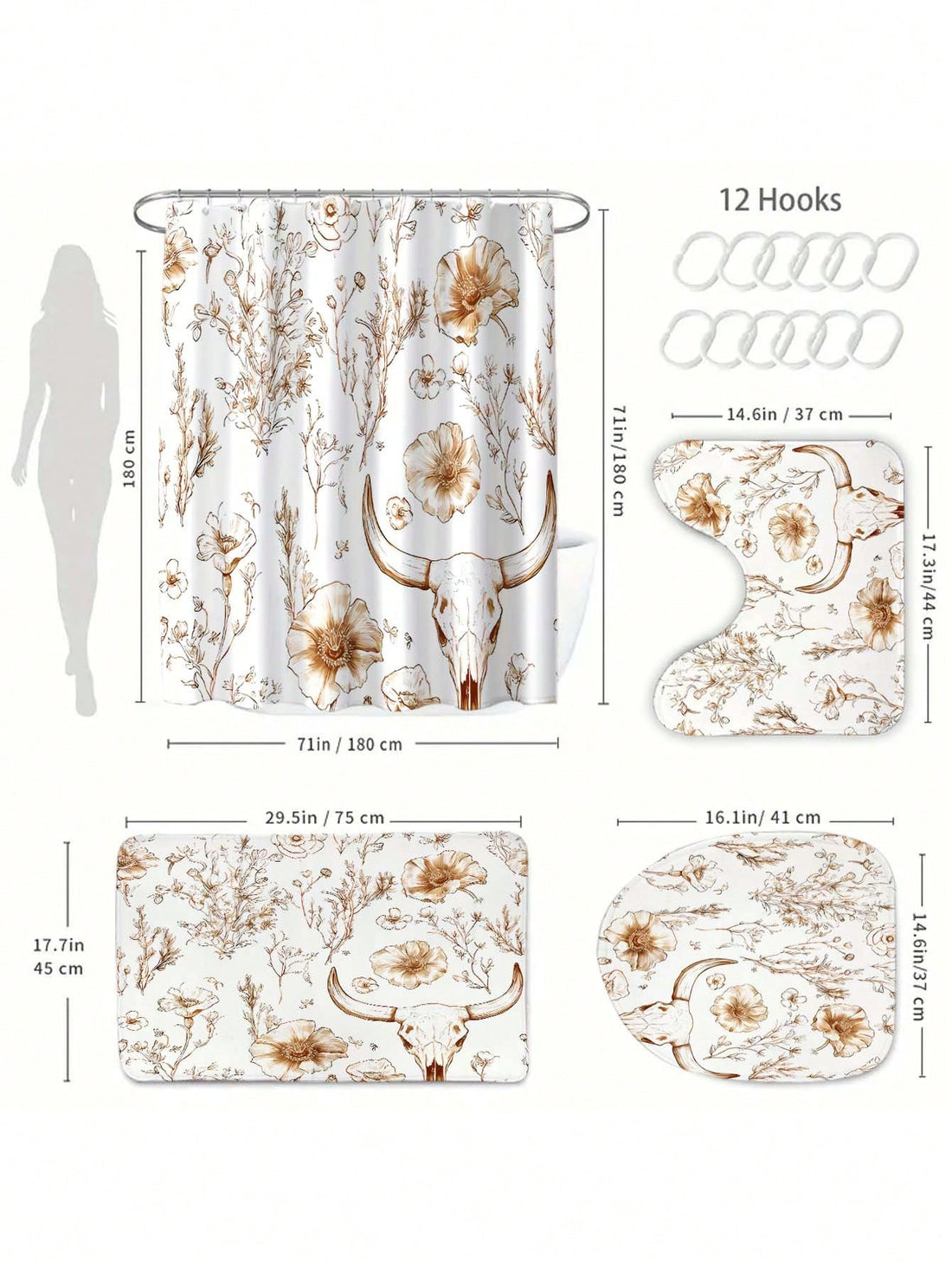 Modern Mid-Century Boho Shower Curtain - Waterproof Bathroom Decor with 12 Hooks