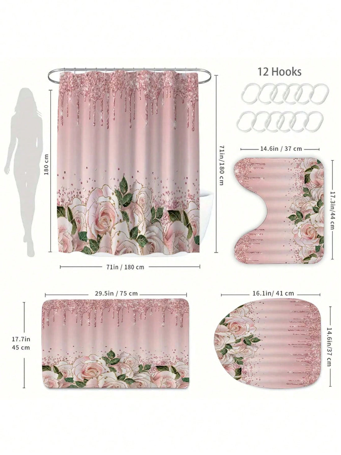 Trendy Leopard and Pink Roses Shower Curtain with Hooks - Waterproof, Machine Washable Bathroom Decor