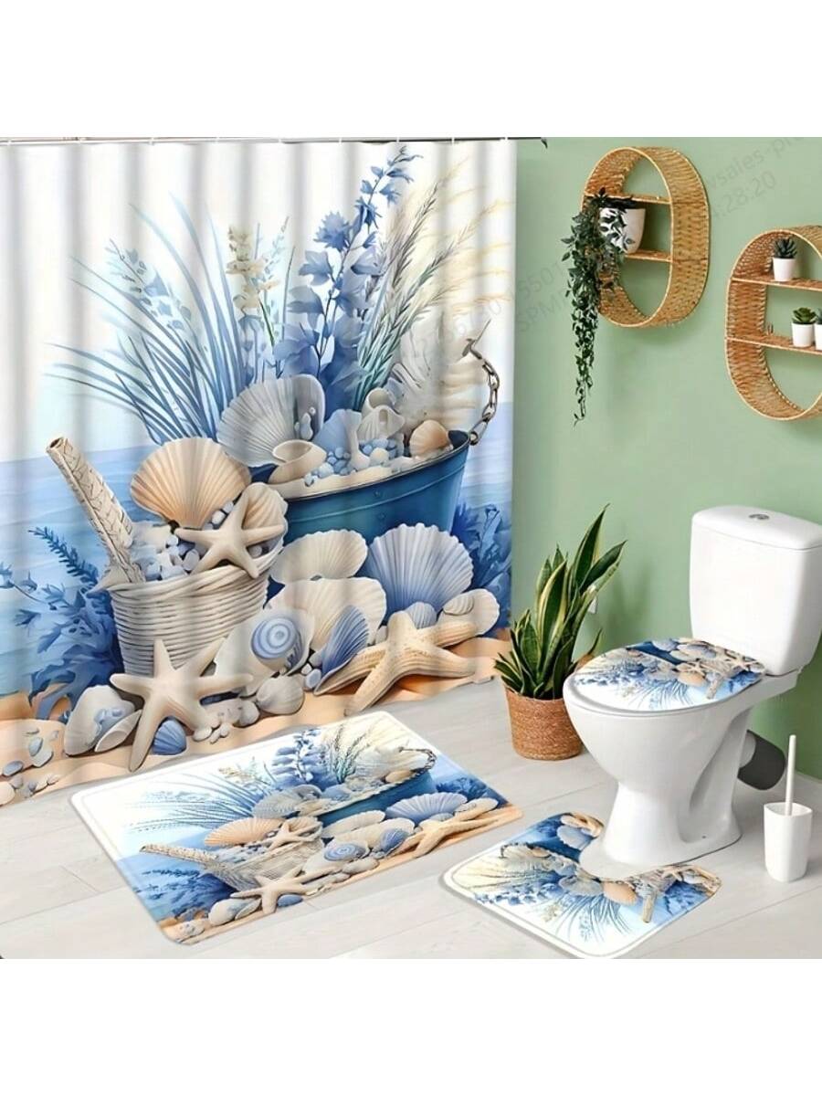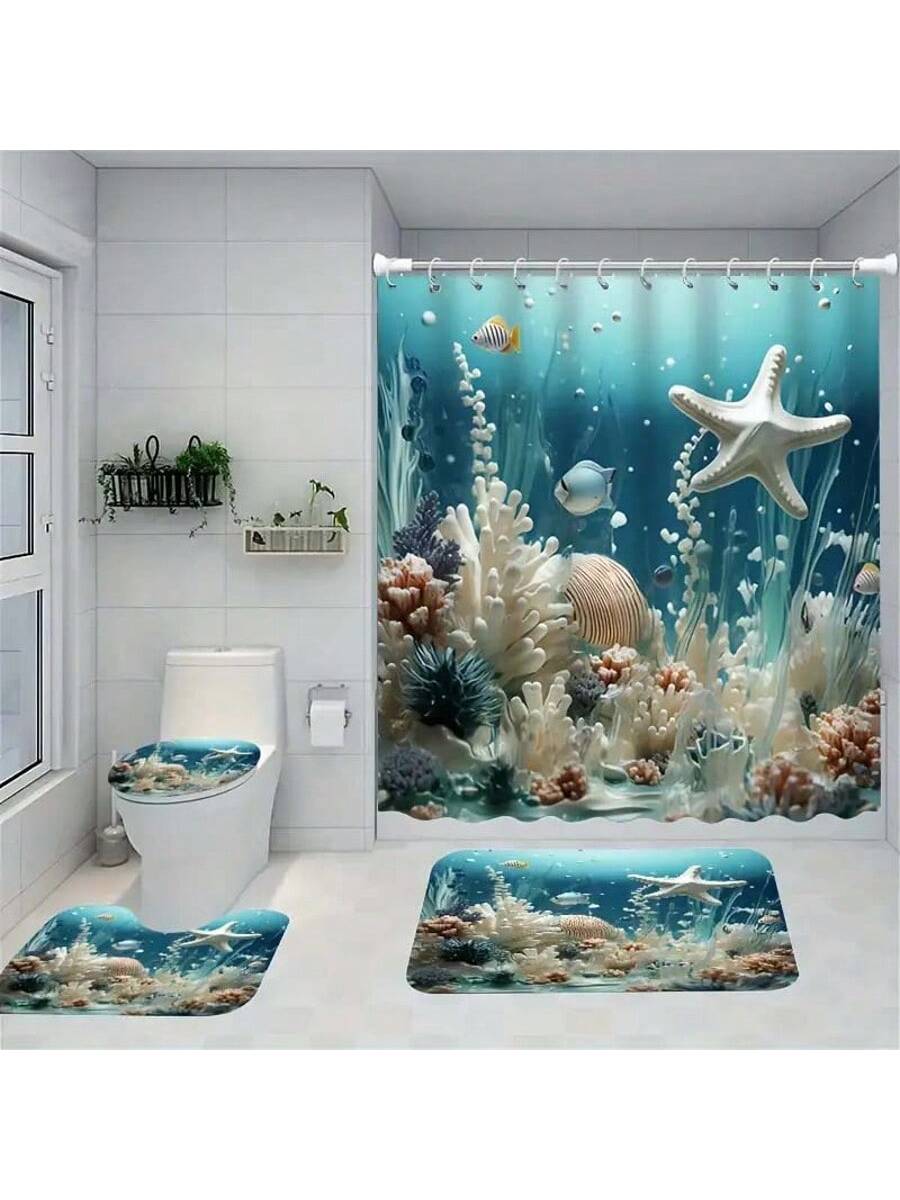 Ocean-Inspired Sea Turtle Waterproof Shower Curtain with Hooks - Modern Bathroom Decor
