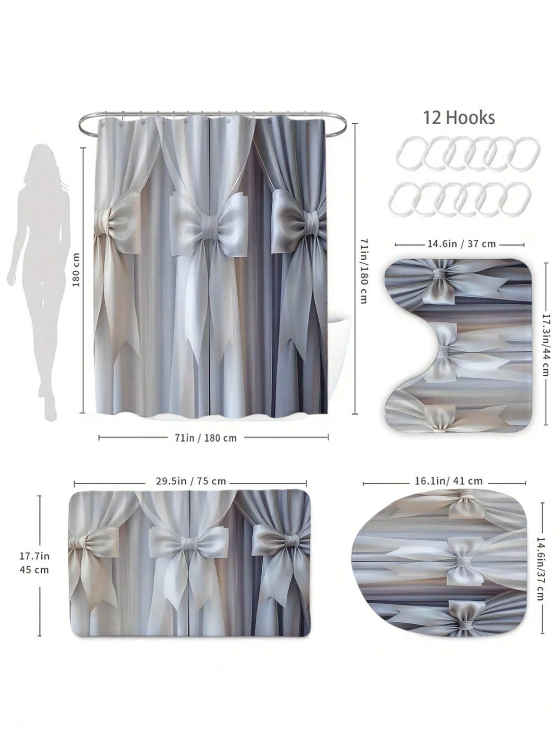Charming Pink Bow Pattern Shower Curtain - Stylish Bathroom Decor with Free Hook, Machine Washable, Ideal for Seasonal Home Transformation