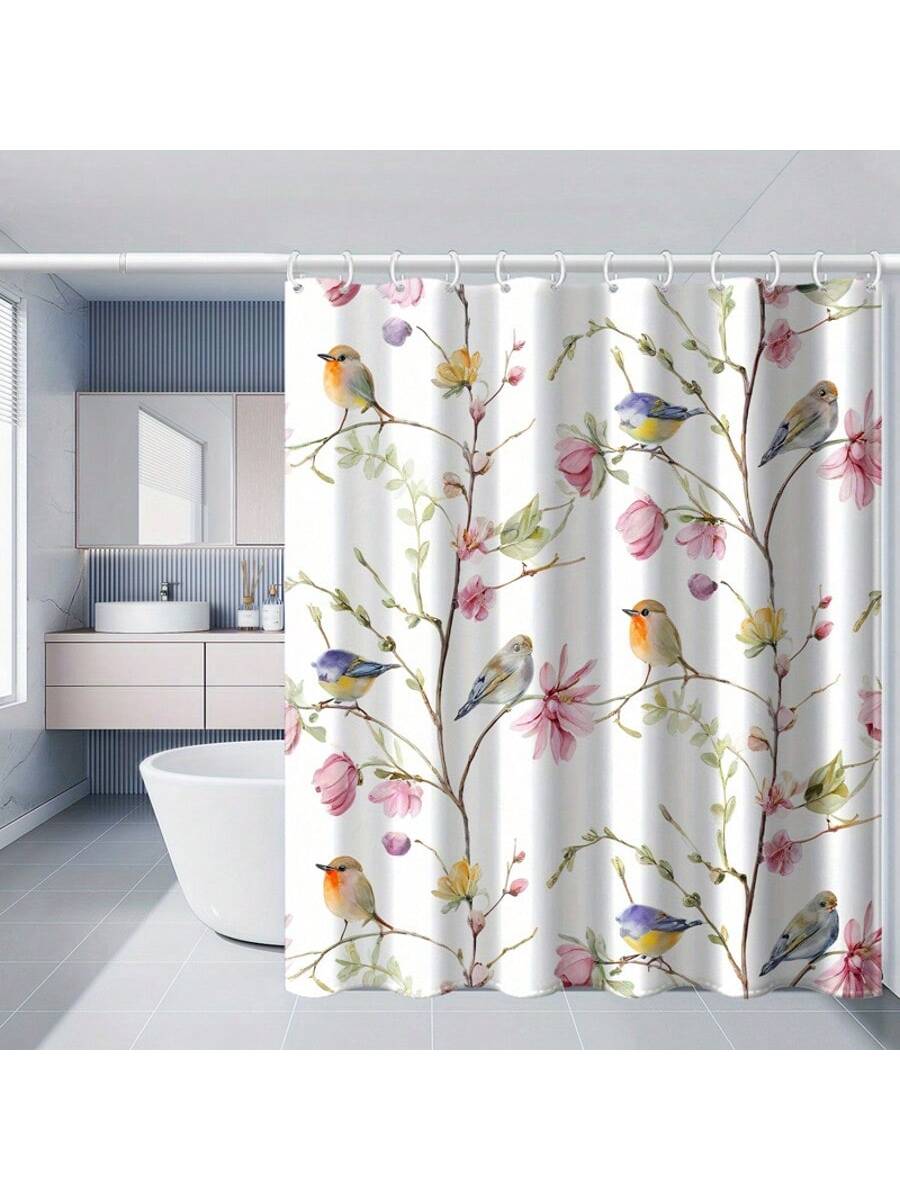 Elegant Flower Plant Patterned Waterproof Shower Curtain - Mildew Resistant Bathroom Decor for Fall and Beyond