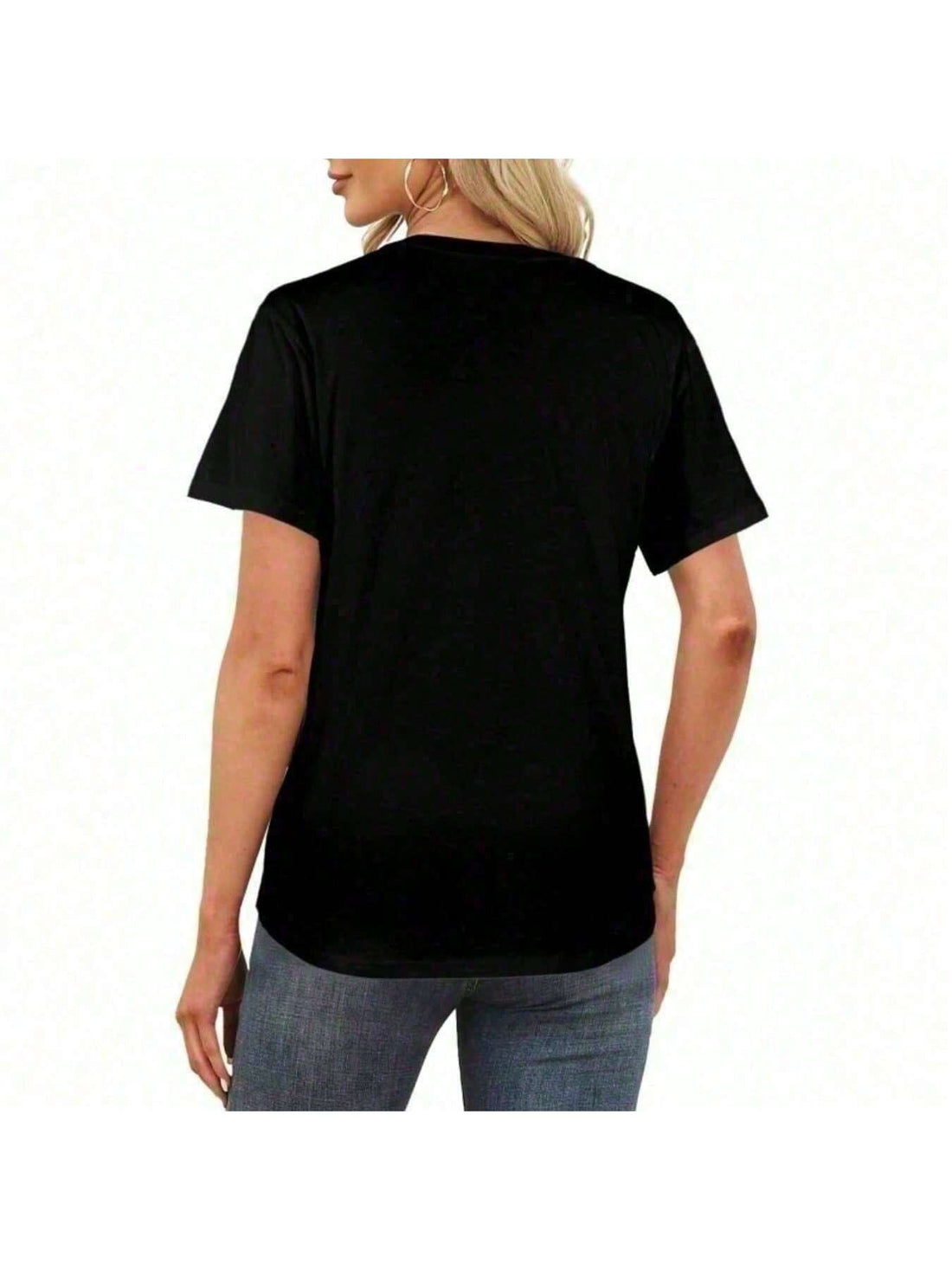 Trendy Women's Back-to-School Casual T-Shirt with Round Neck and Short Sleeves