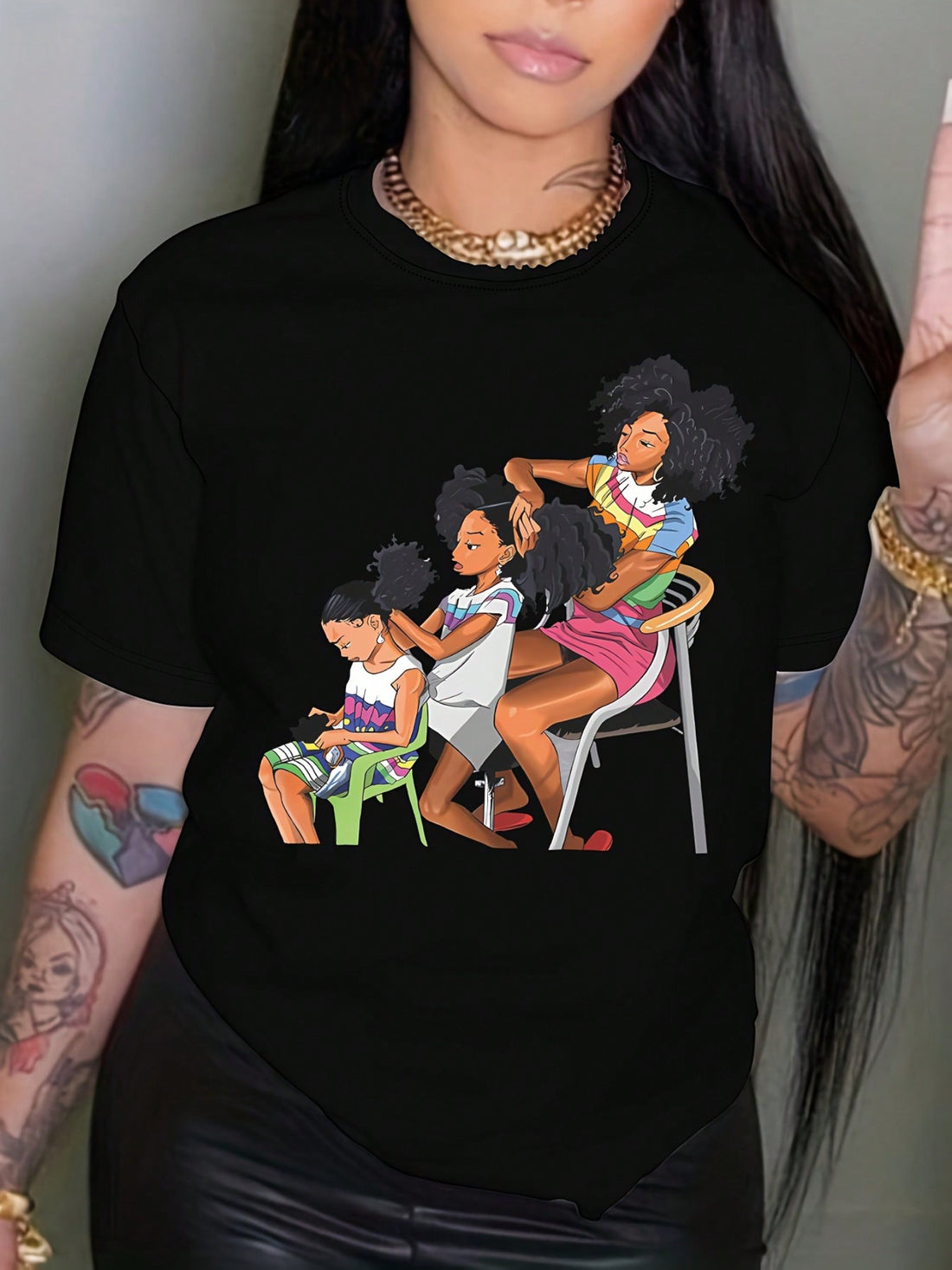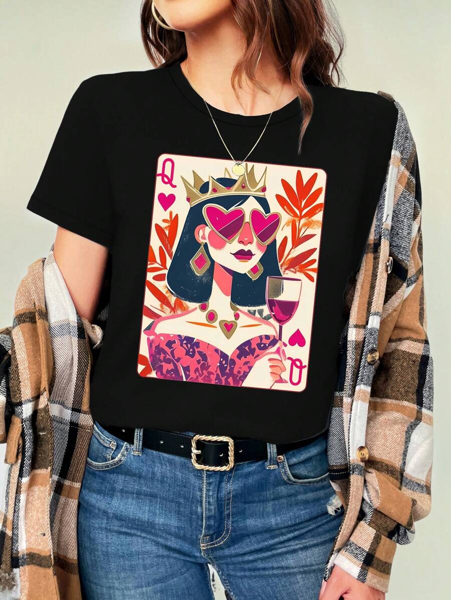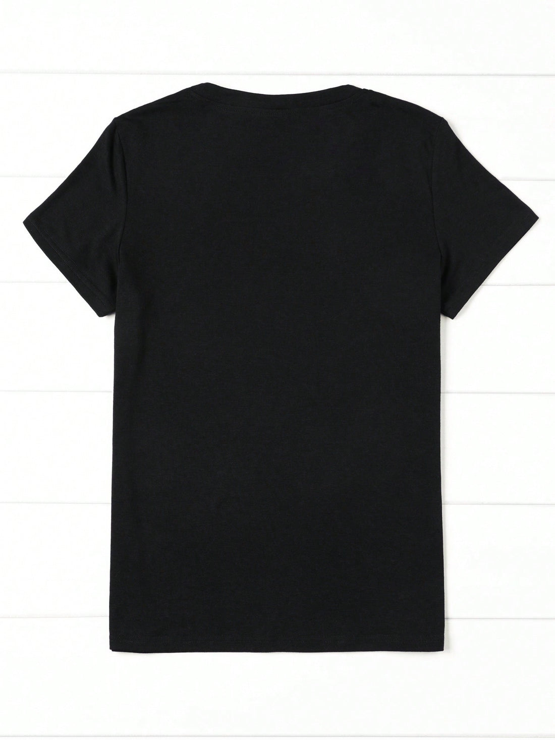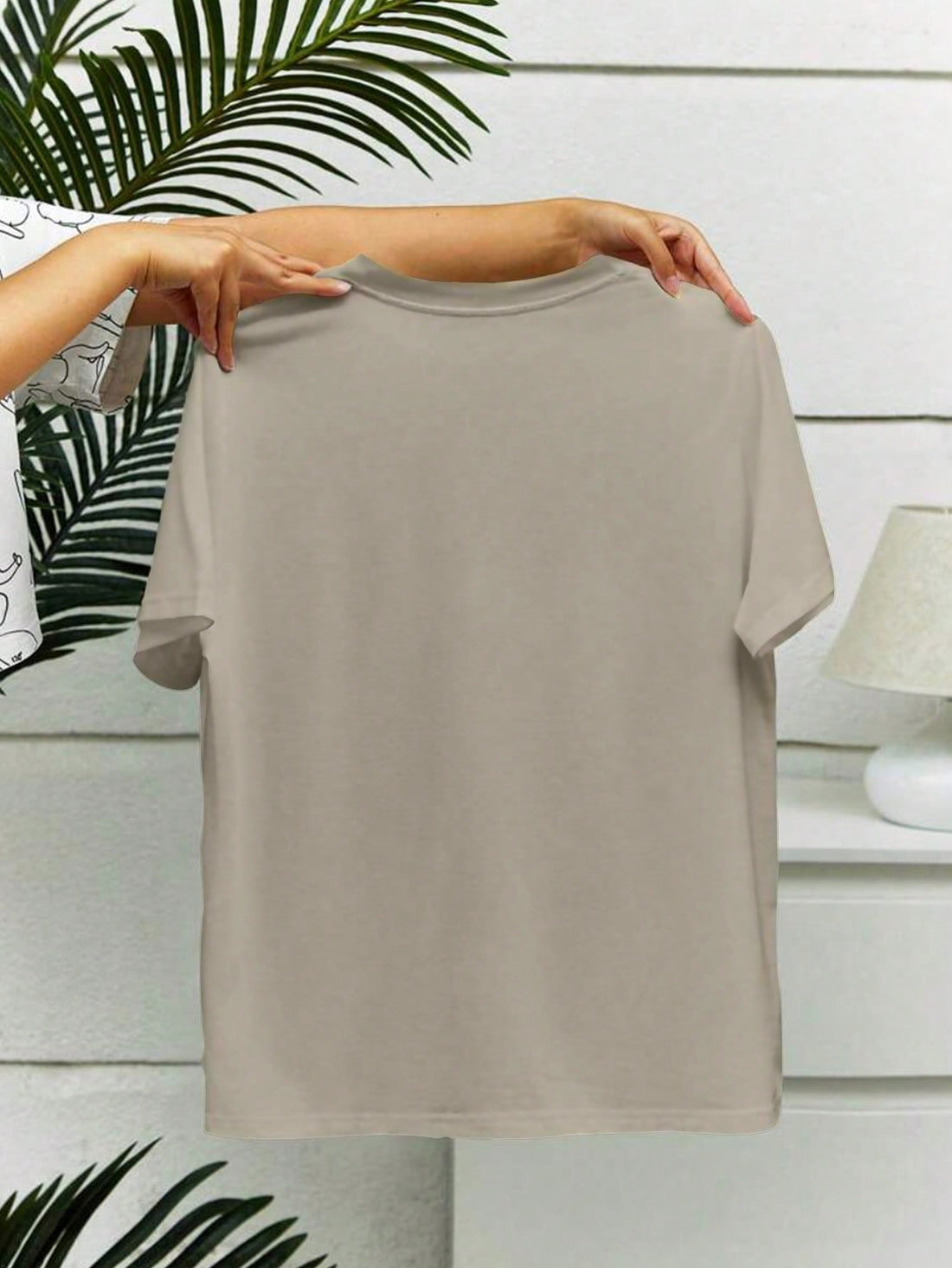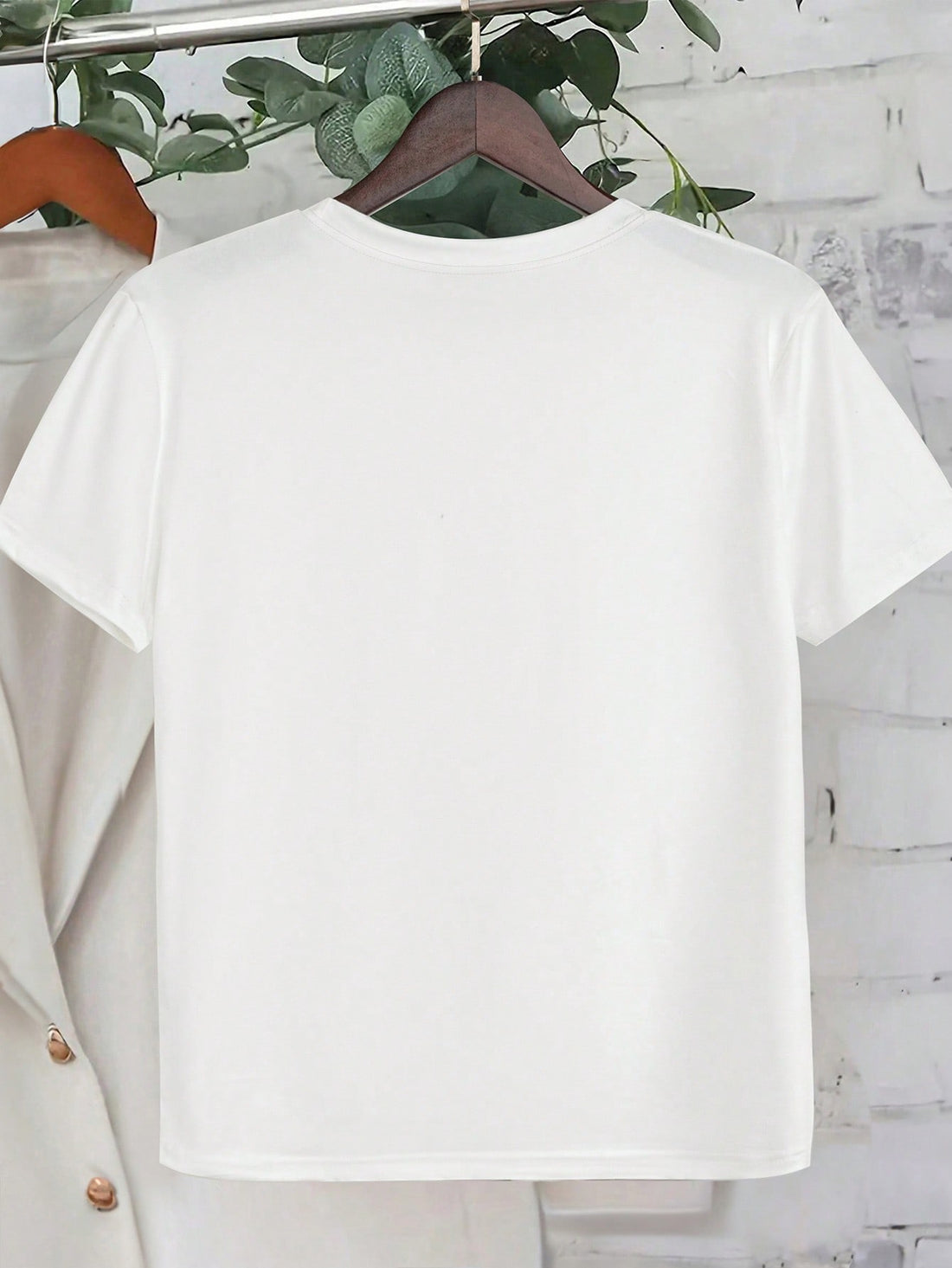 Trendy Women's Back-to-School Casual T-Shirt with Round Neck and Short Sleeves
