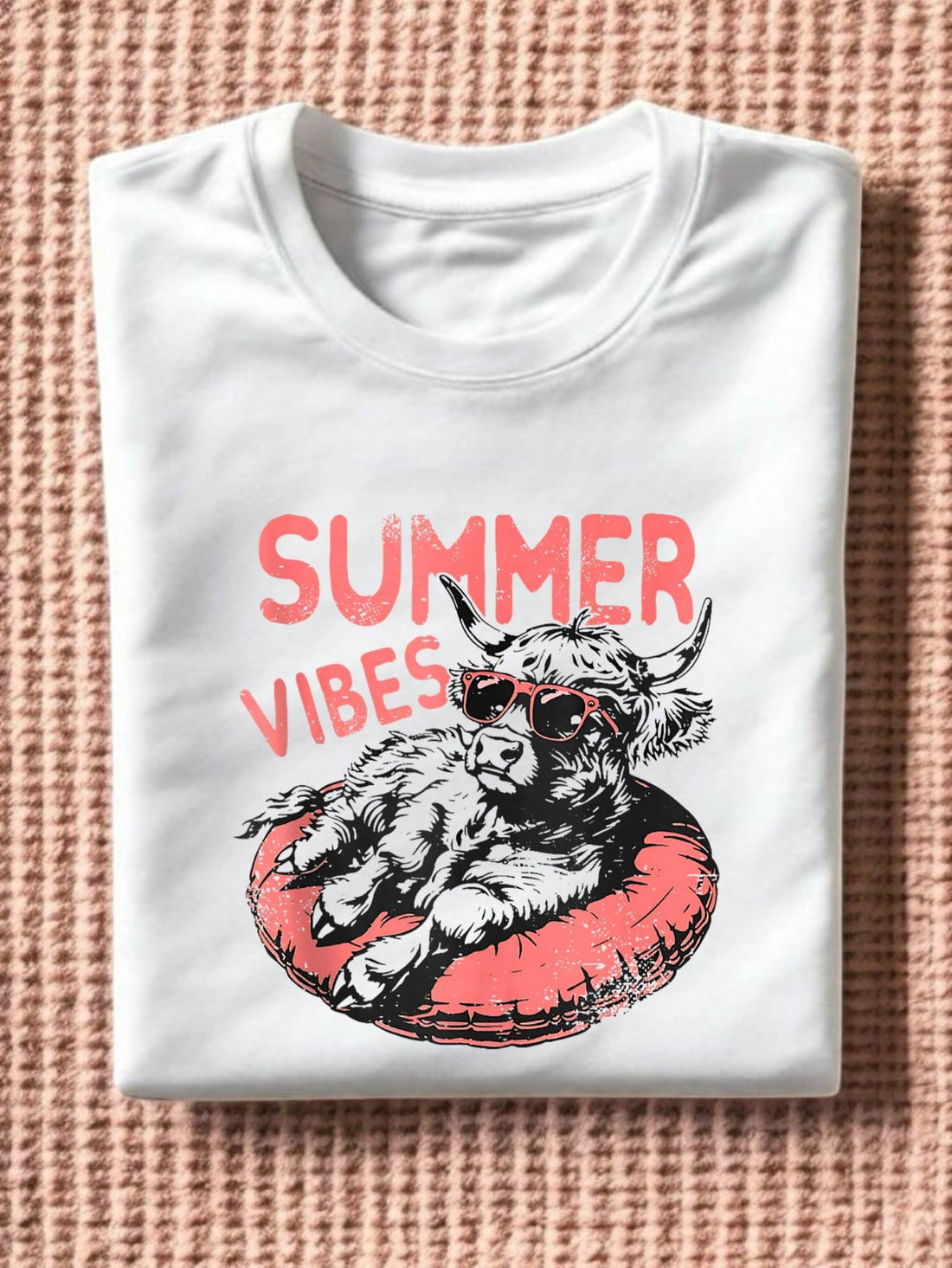 Dive into summer style with this quirky women's round neck tee featuring a playful canned...