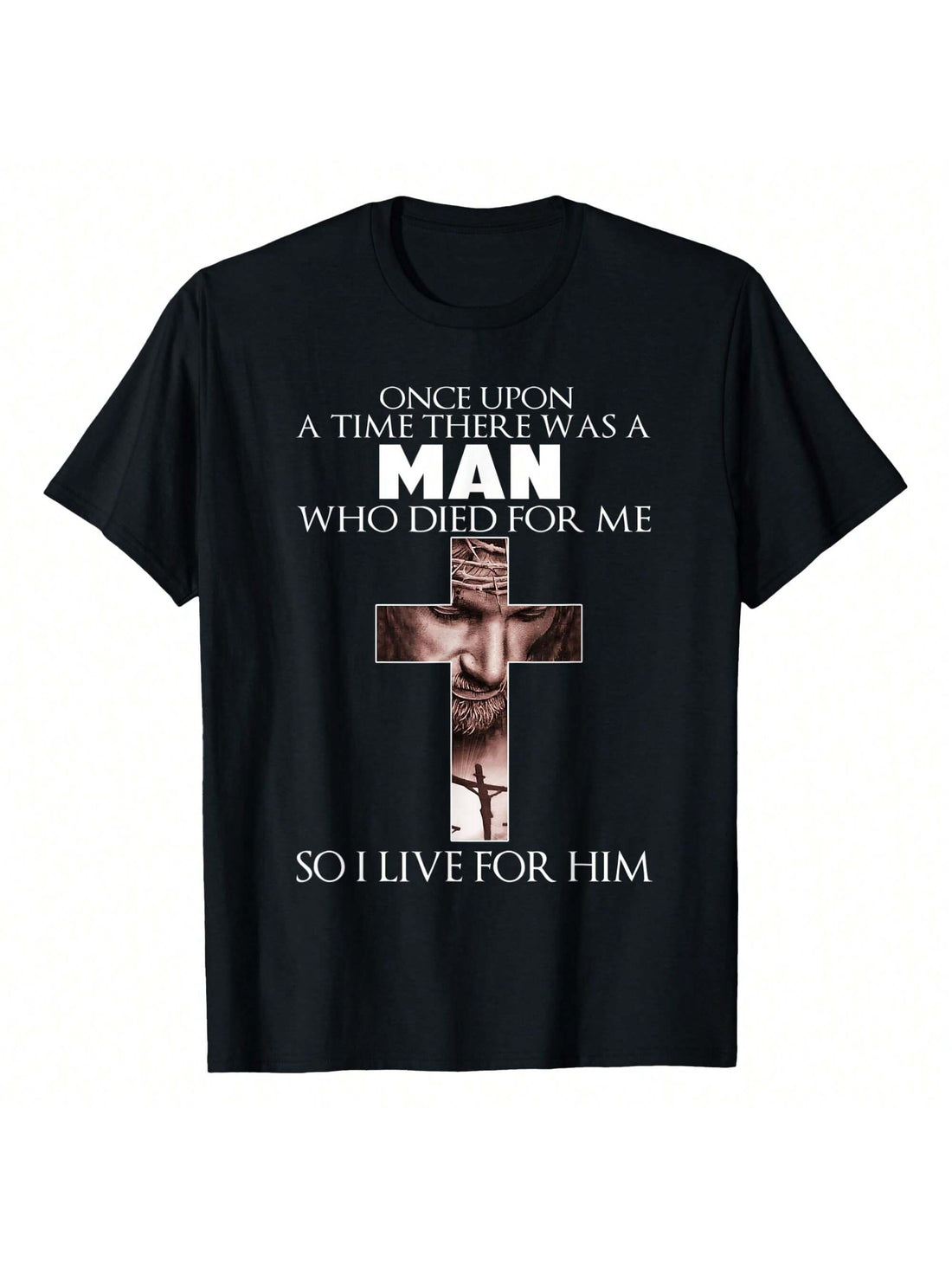 Men's Minimalist Cross Print T-Shirt - Casual Round Neck Short Sleeve Daily Wear
