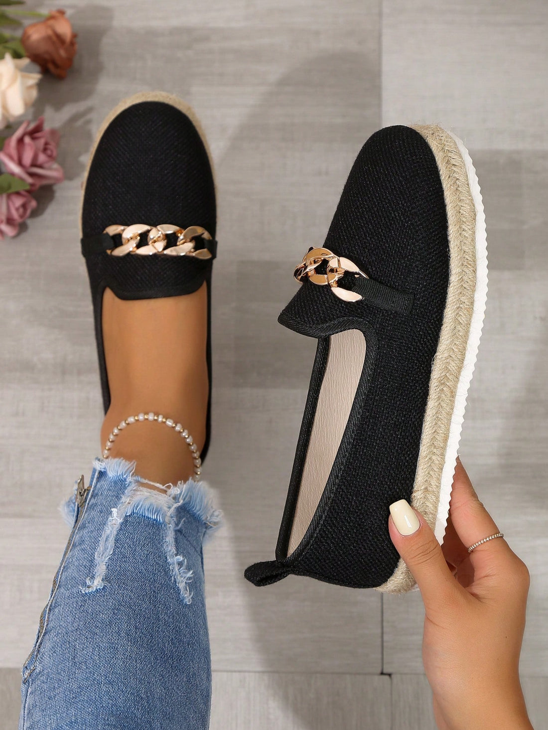 Stylish and Comfortable: Women's Rope Chain Thick-Soled Flat Shoes