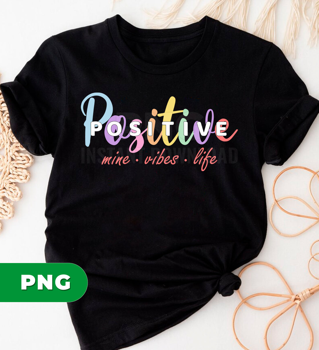 Positive Mine Vibes Life Colorful Inspirational Quote Typography Handwritten Pastel Colors Png File
