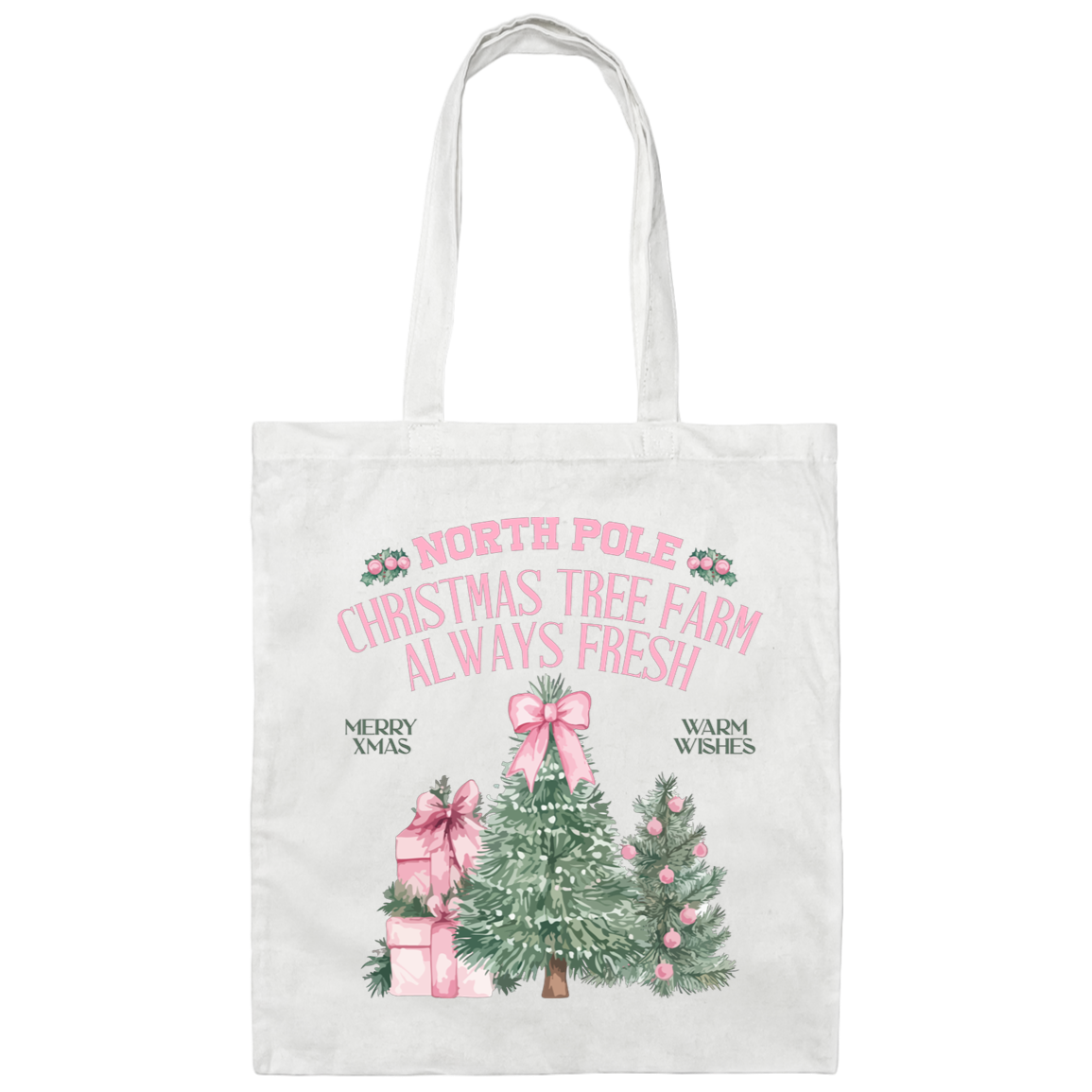 7. North Pole, Christmas Tree Farm Always Fresh, Merry Xmas, Warm Wishes Canvas Tote Bag