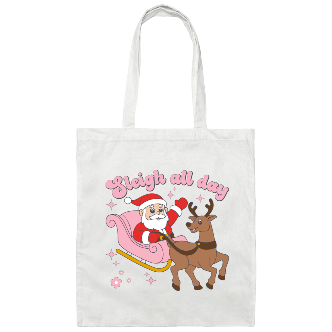 10. Sleigh All Day, Santa Sleigh, Funny Santa, Funny Reindeer Canvas Tote Bag