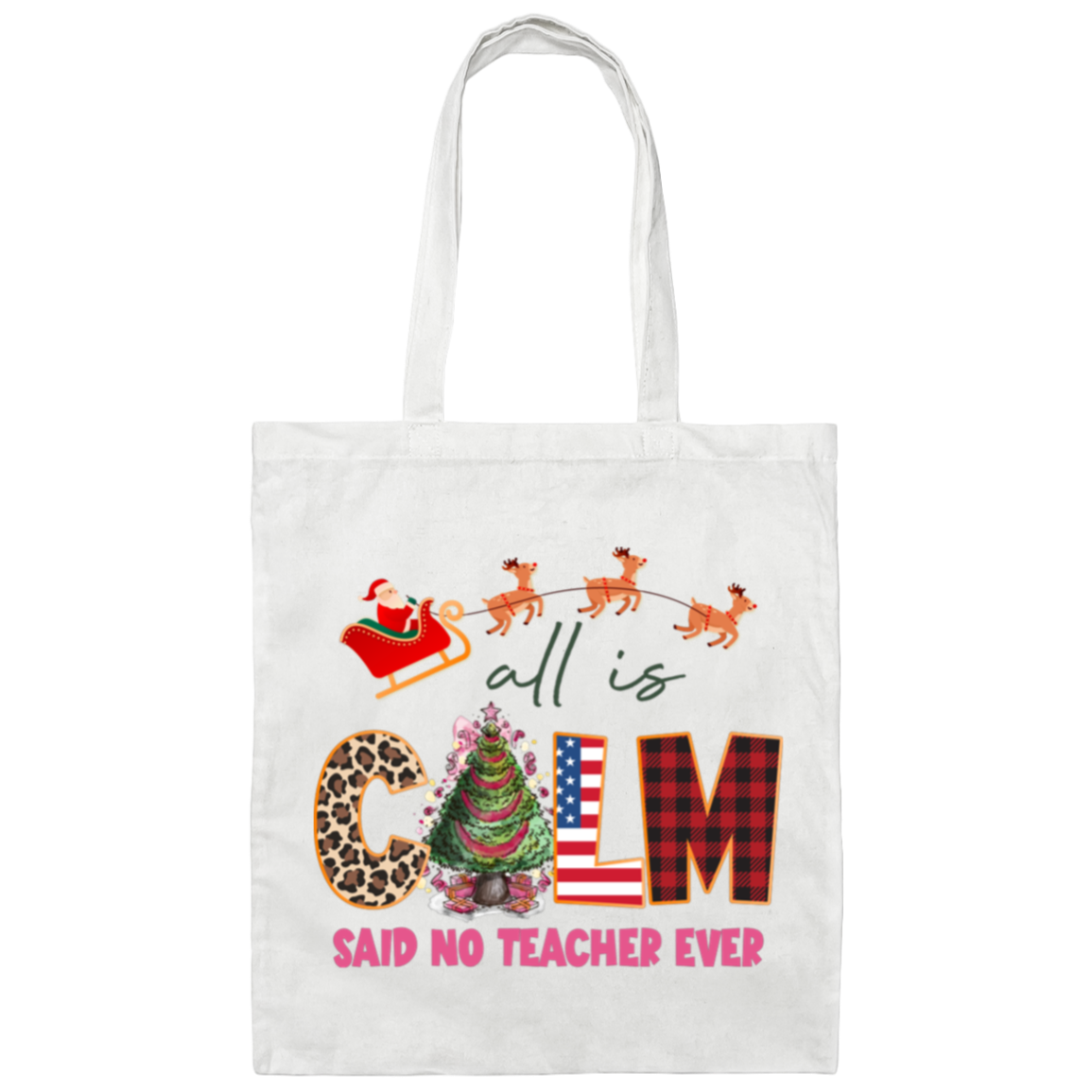 6. All Is Calm Said No Teacher Ever, Reindeer Ride Santa Canvas Tote Bag