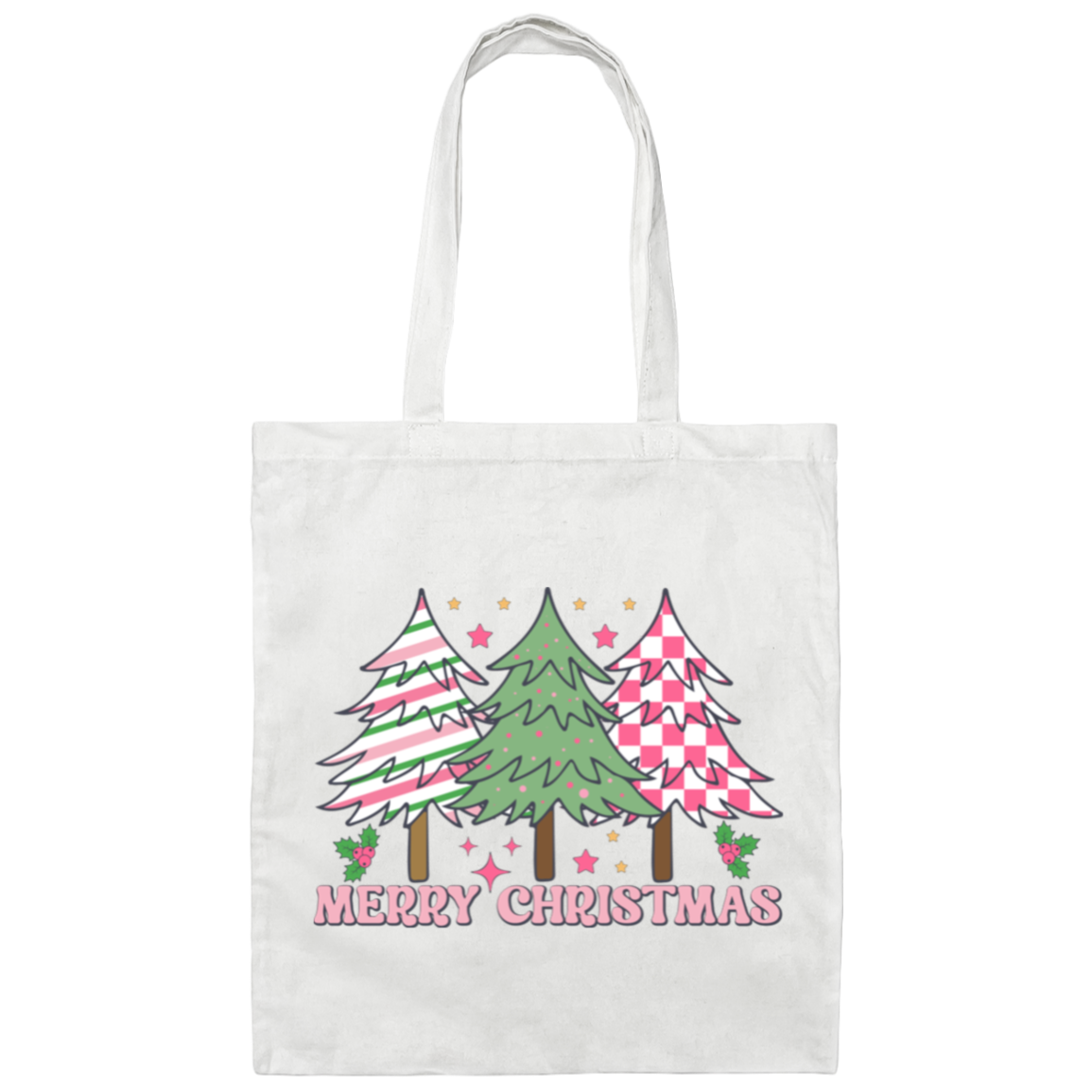 9. Pink Christmas, Christmas Tree, Pink Plaid Xmas Tree Canvas Tote Bag